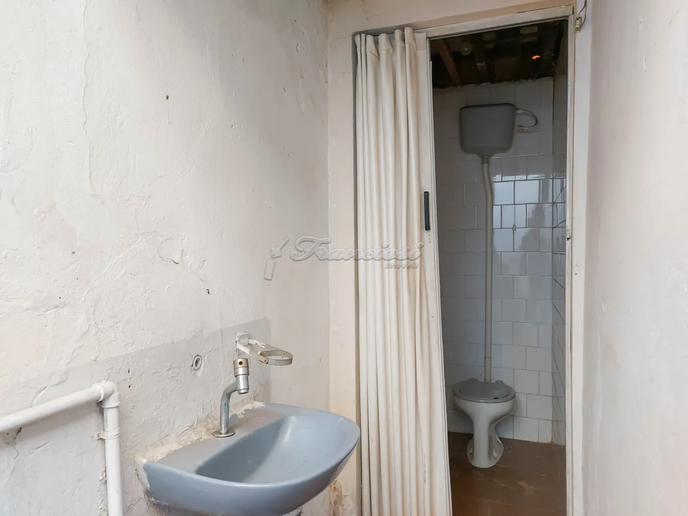 Salão comercial medindo 57 m² com 1 sala, 1 banheiro, cozinha, 1 banheiro externo e 2 cômodos no fundo.