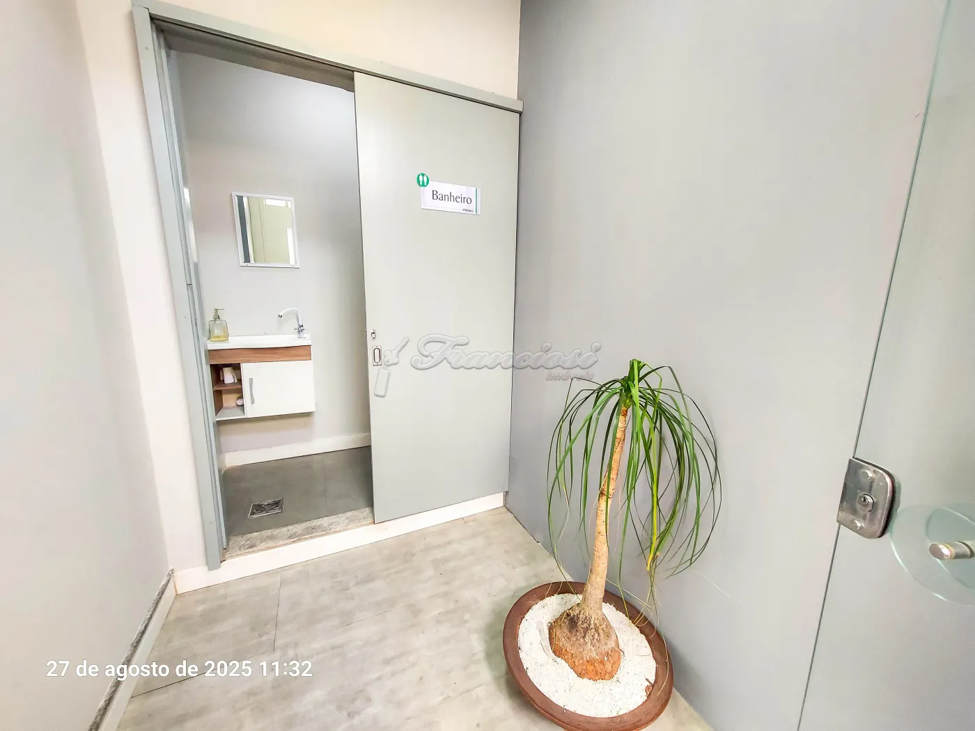 Salão medindo aproximadamente 50 m² com 1 banheiro e escritório.