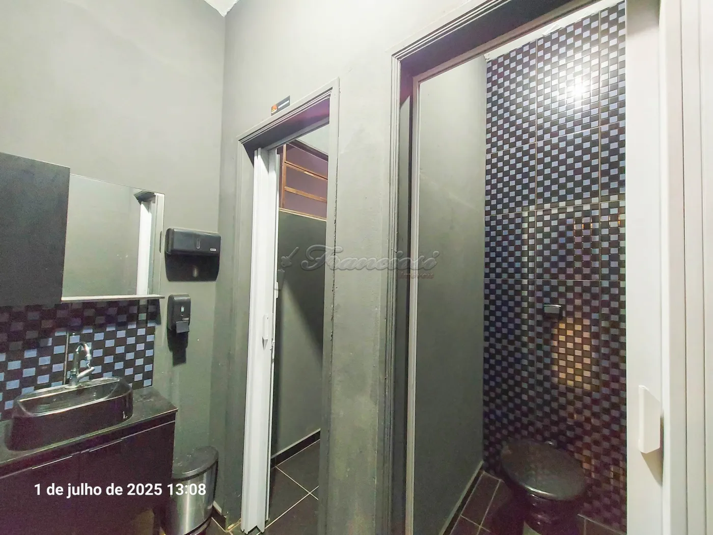 Salão comercial medindo aproximadamente 211 m² com 2 banheiros.