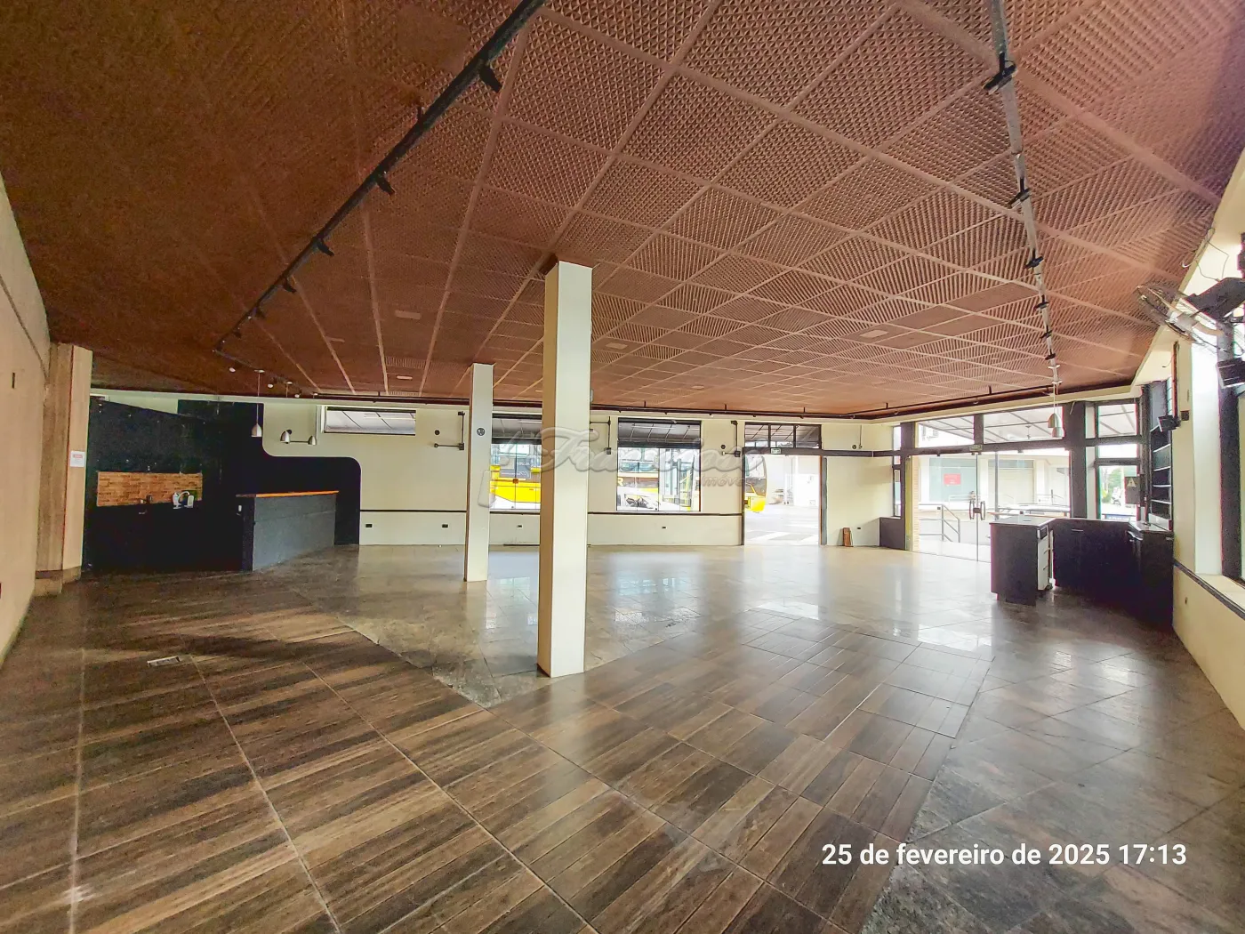 Salão comercial medindo aproximadamente 530 m² com balcão, cozinha, 6 banheiros sendo 1 com acessibilidade.