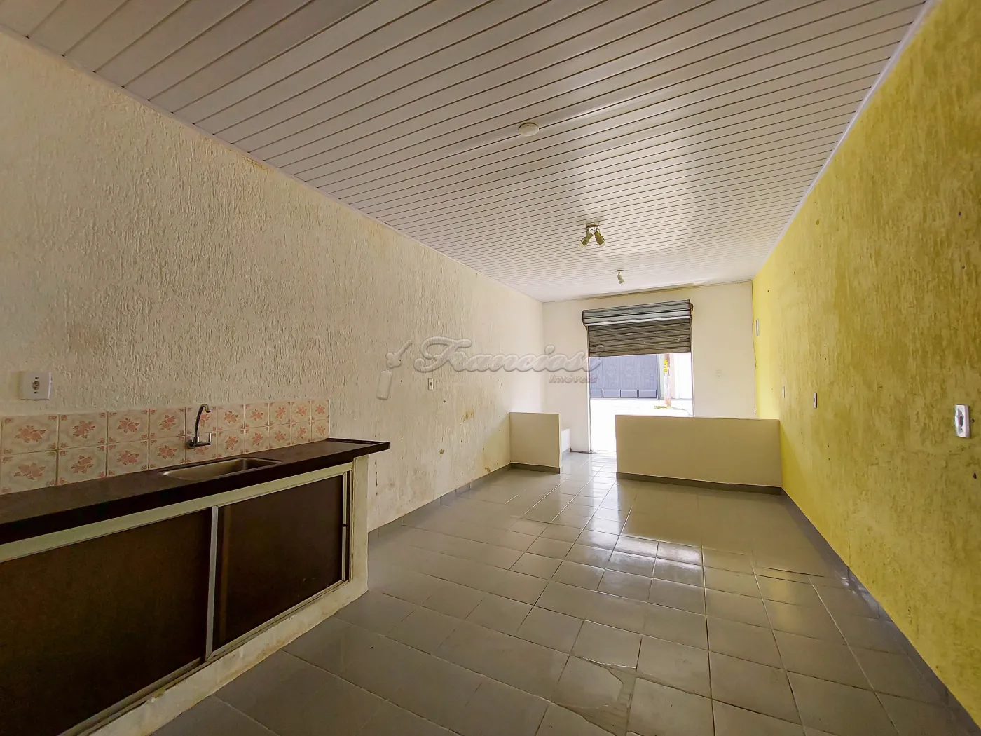 Salão comercial medindo aproximadamente 40 m², com pia e 1 banheiro.