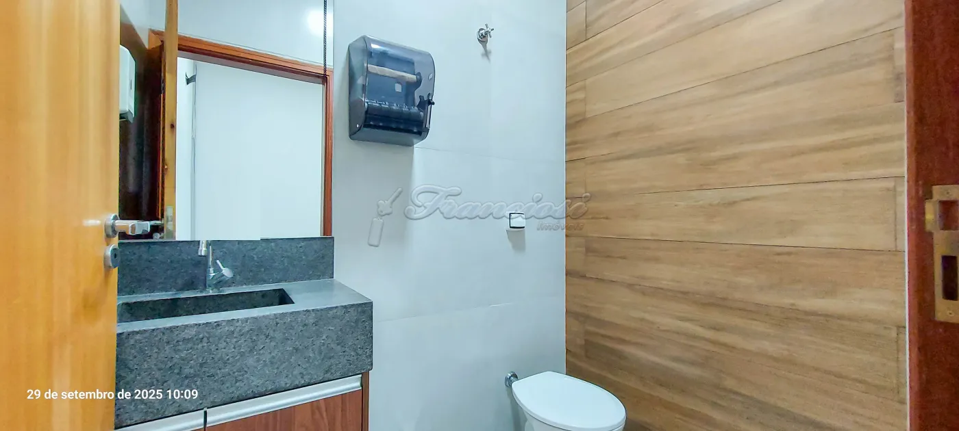 Salão comercial com 2 banheiros com gabinete, copa e 2 salas.