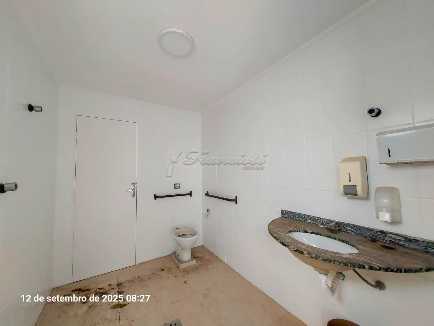 Salão comercial medindo aproximadamente 253 m² com cozinha, área de serviço, 2 banheiros, mezanino com 1 banheiro medindo aproximadamente 97 m² e área de luz. Acabamento: Piso polido e porcelanato.