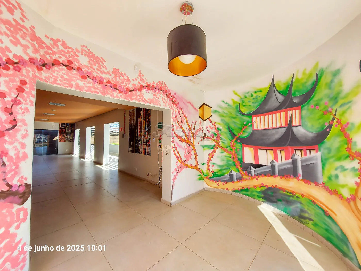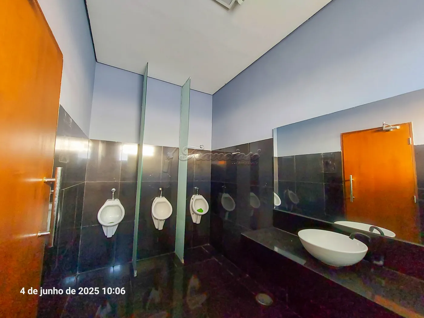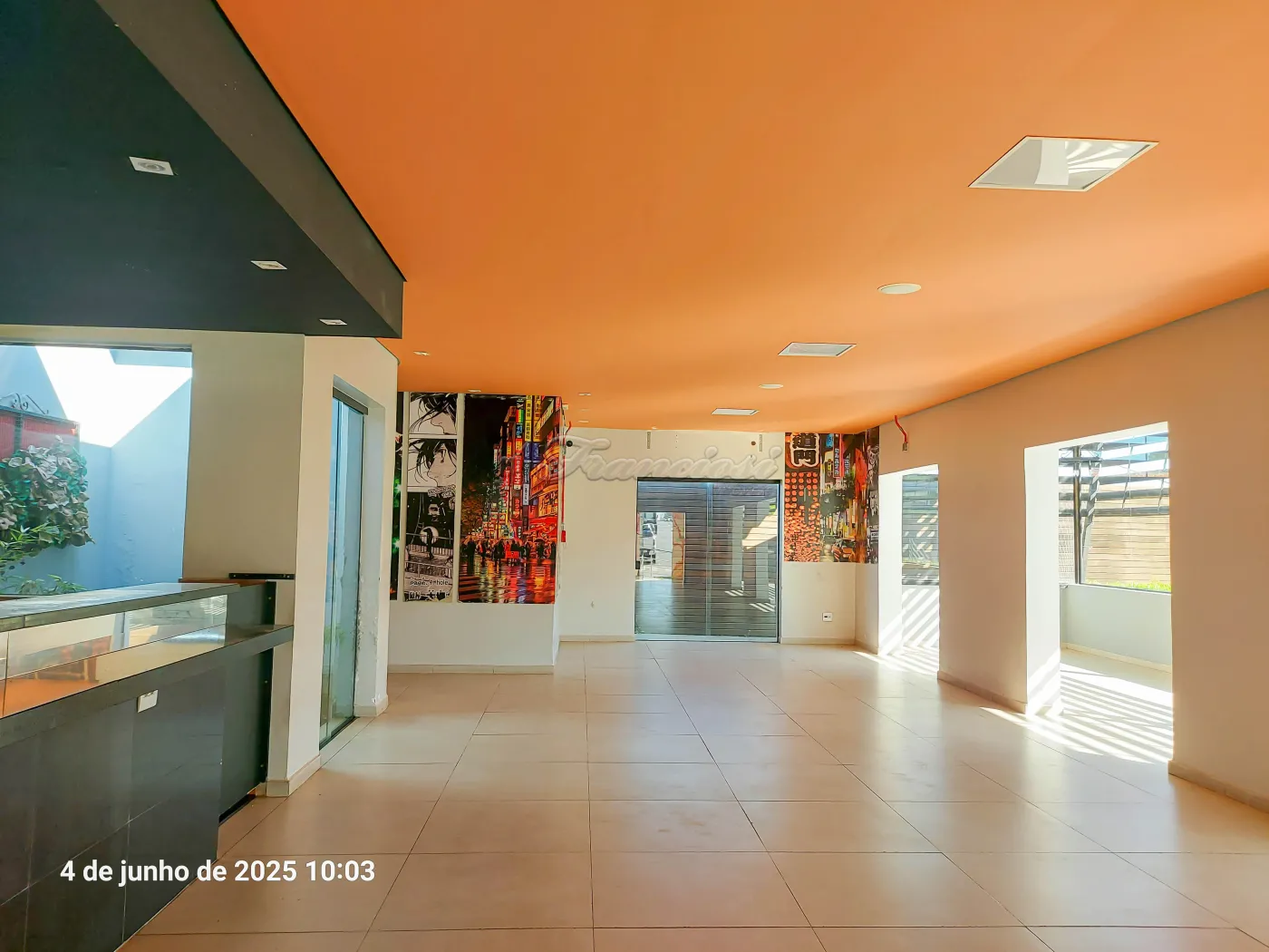 Salão comercial amplo, 2 recepções, 2 cozinhas, 2 despensas, 3 banheiros sendo um adaptado, edícula com despensa e banheiros.