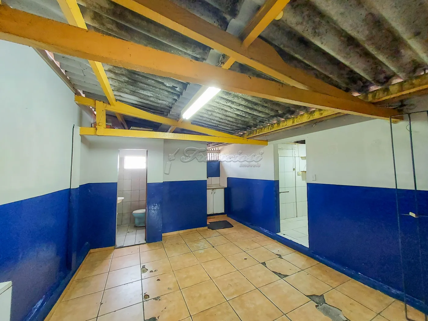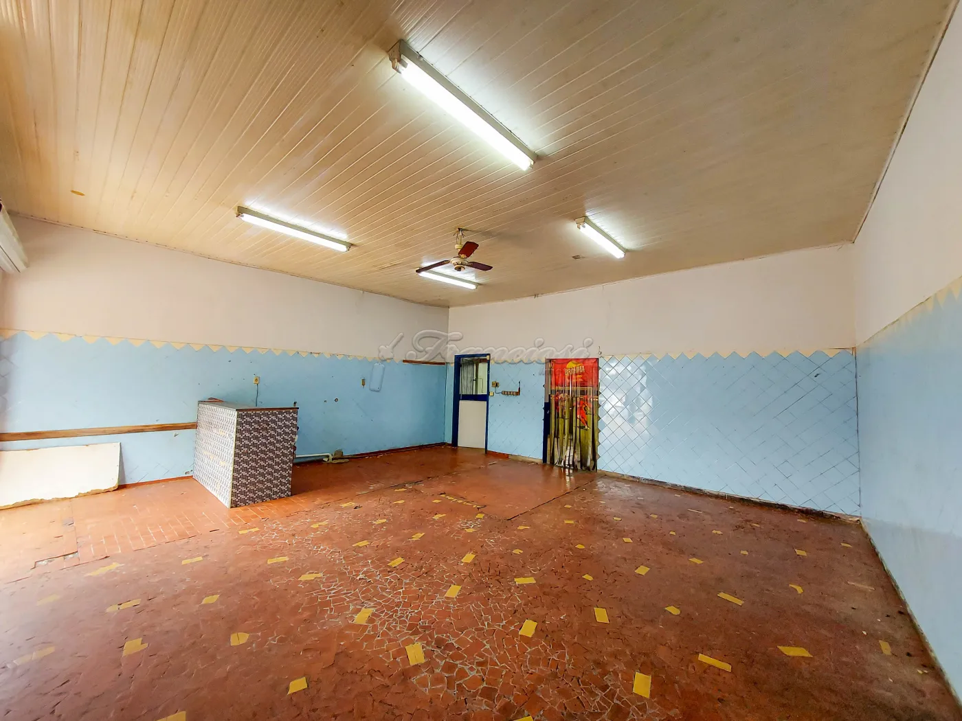 Salão comercial medindo aproximadamente 84 m² com balcão, copa, 2 banheiros e 1 sala.