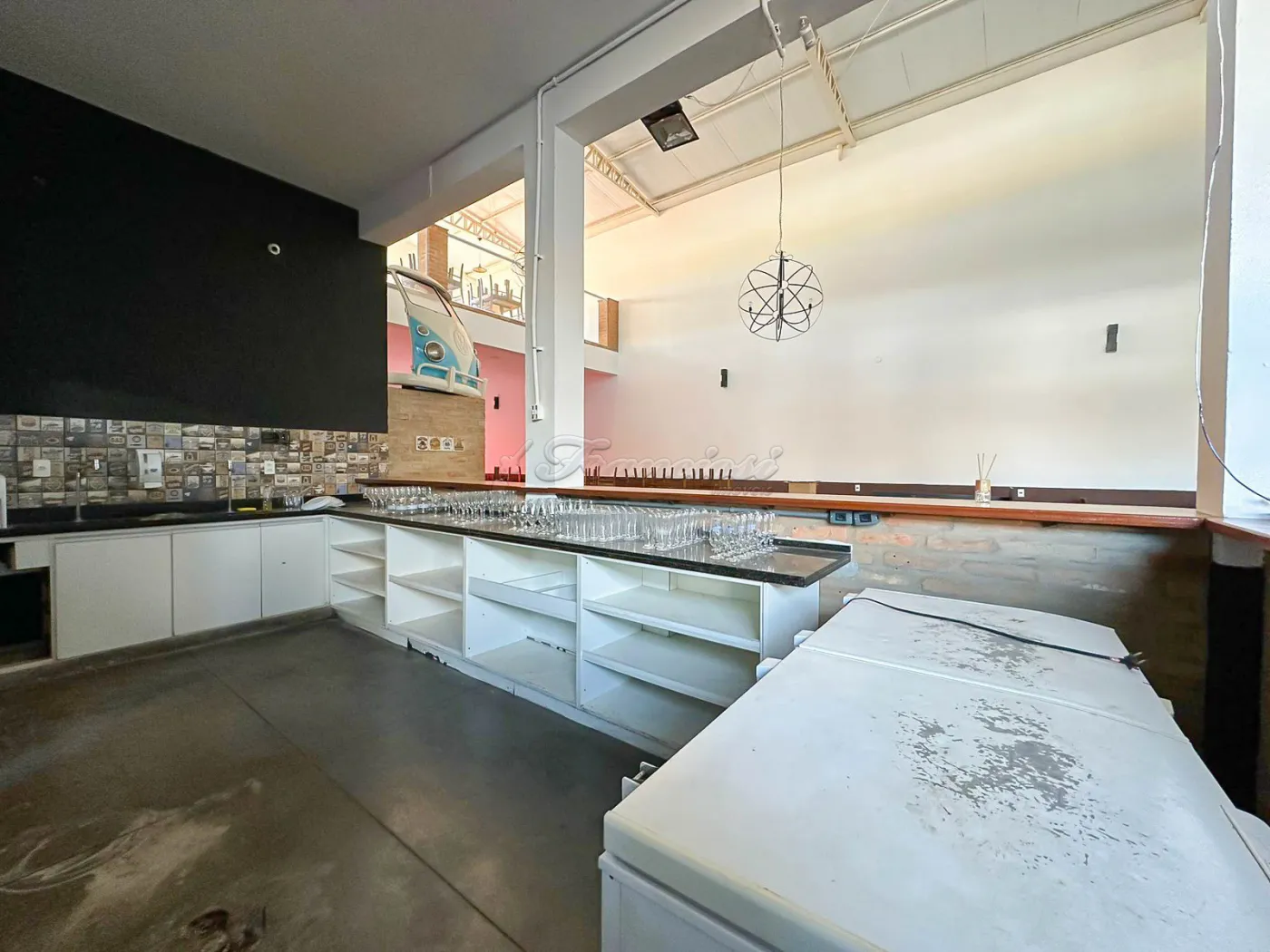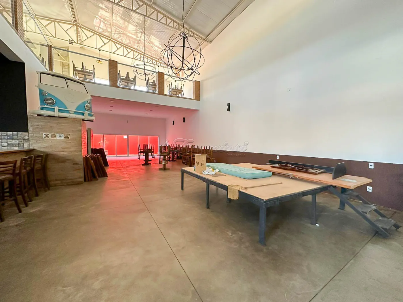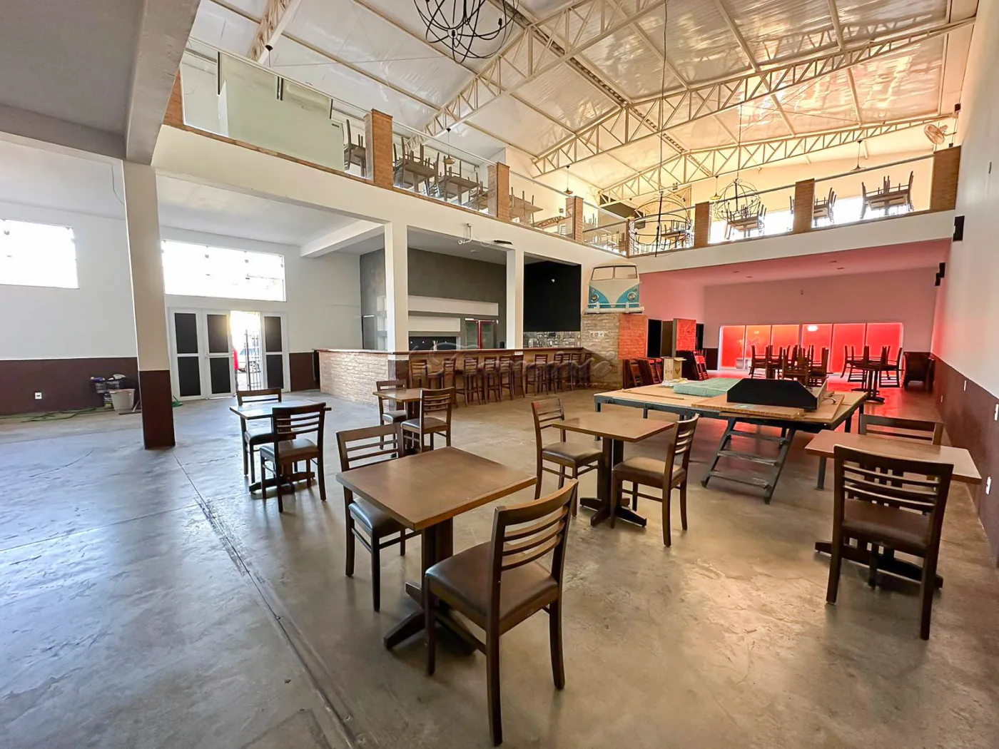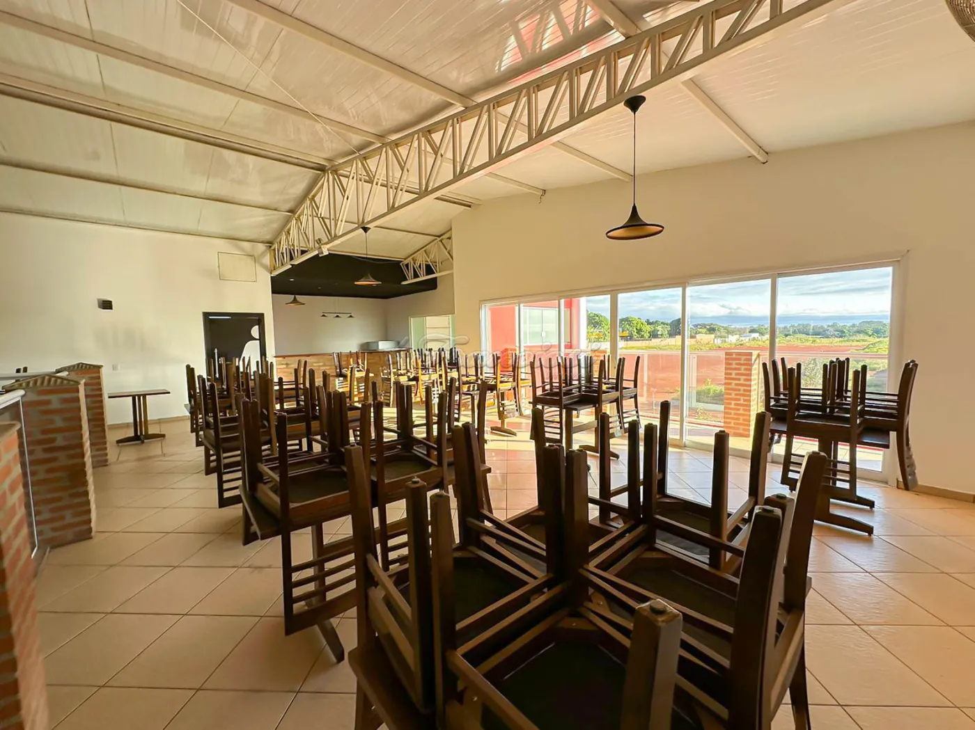 Salão comercial amplo com mesas e cadeiras, deck amplo, recepção, espaço para bar equipado, área de luz, cozinha industrial toda equipada, 2 banheiros com acessibilidade, mezanino com escritório, 2 banheiros, mesas e cadeiras, 1 sala, copa e varanda. Recuo para vários carros.