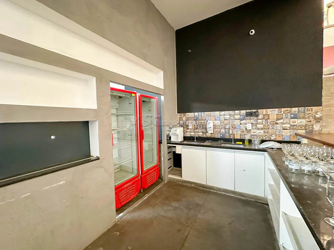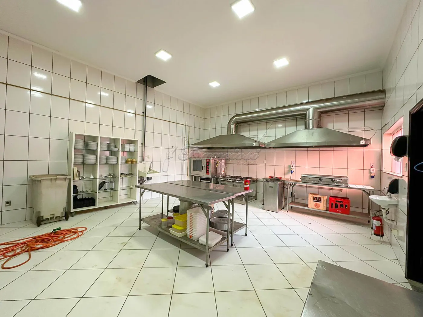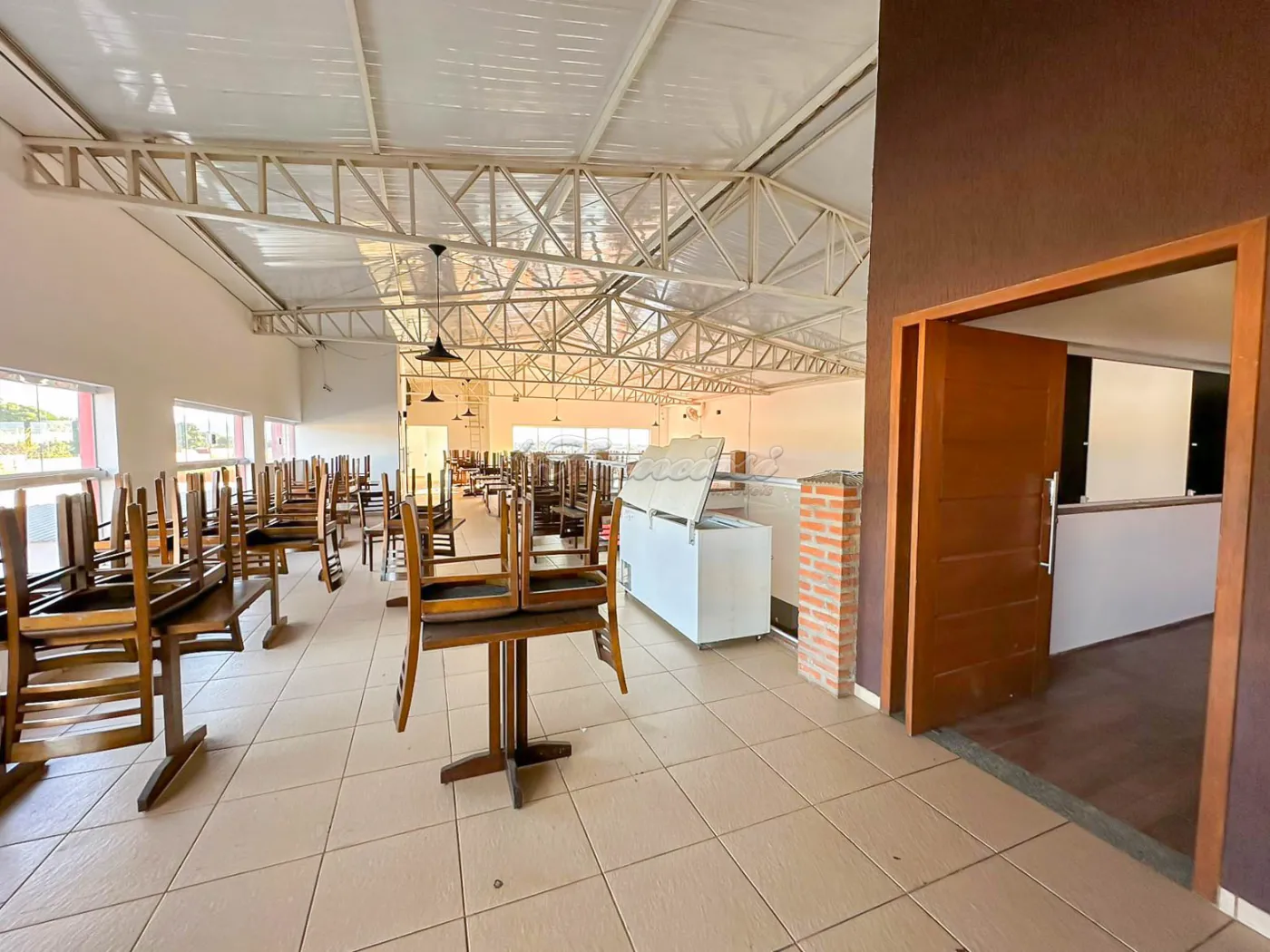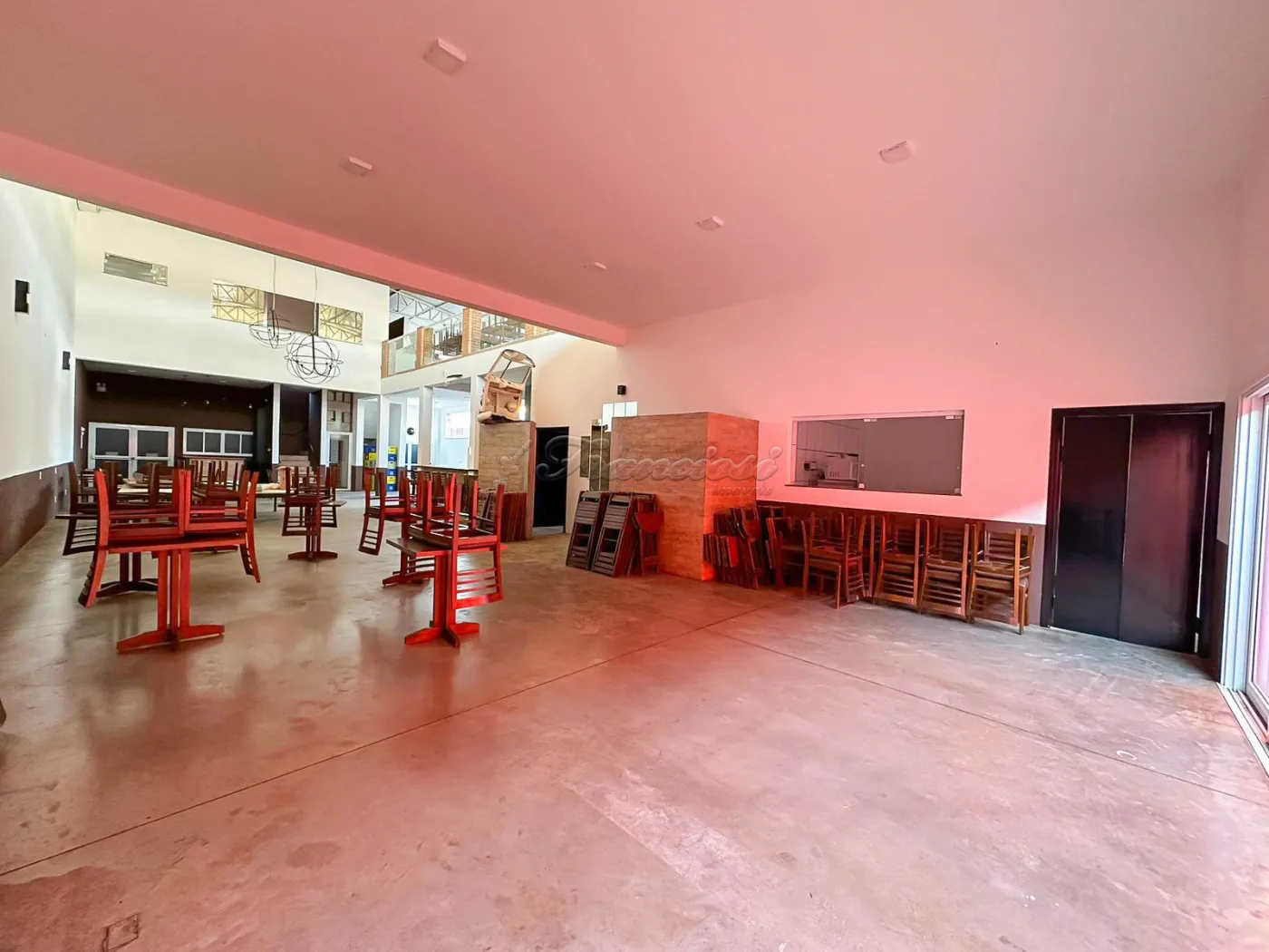 Salão comercial amplo com mesas e cadeiras, deck amplo, recepção, espaço para bar equipado, área de luz, cozinha industrial toda equipada, 2 banheiros com acessibilidade, mezanino com escritório, 2 banheiros, mesas e cadeiras, 1 sala, copa e varanda. Recuo para vários carros.
