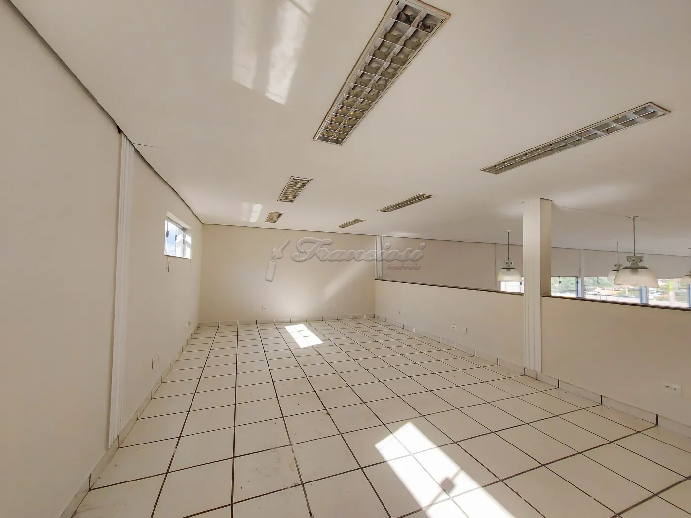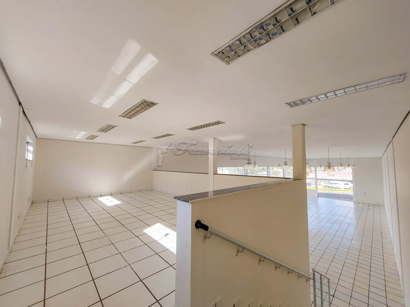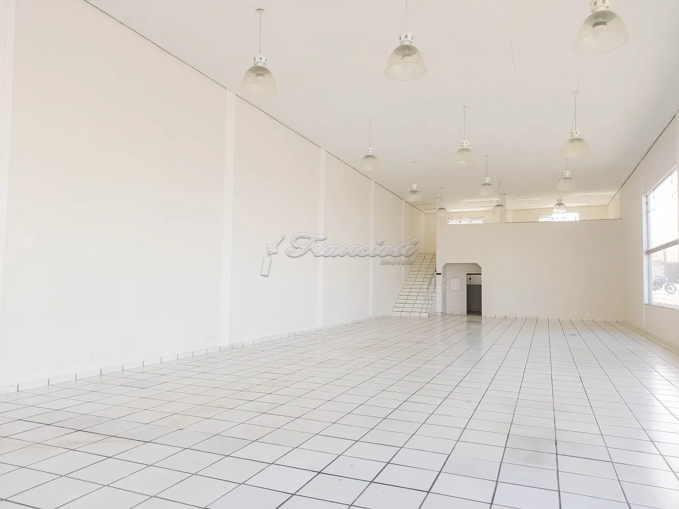 Salão comercial com 250 m² de pé direito, mezanino medindo 50 m², copa, 3 banheiros sendo 1 para deficiente, 1 banheiro fora, escritório, área de serviço.