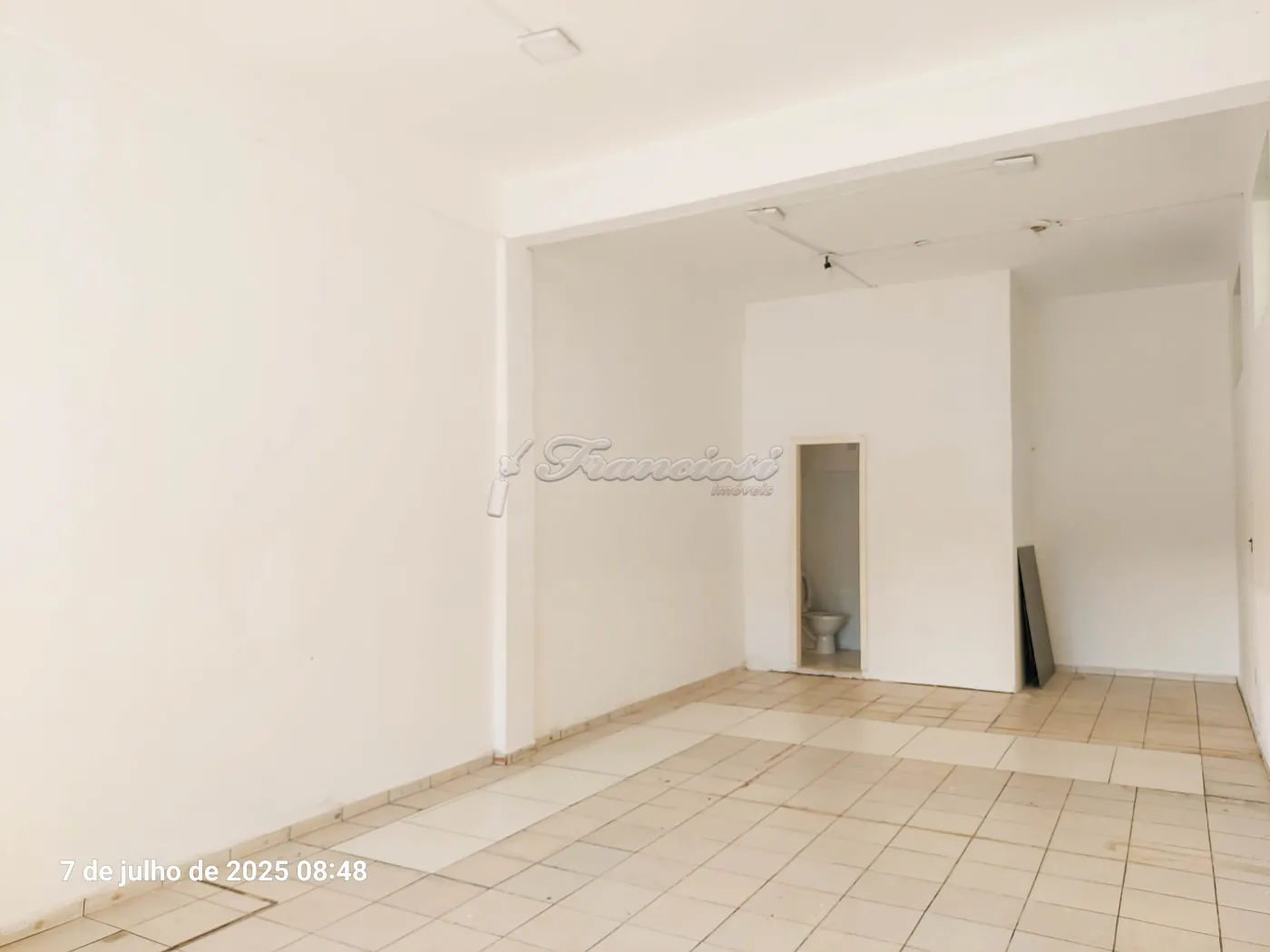 Salão medindo aproximadamente 41m² com 1 banheiro.