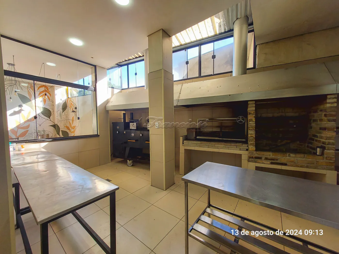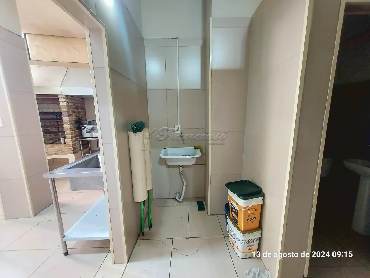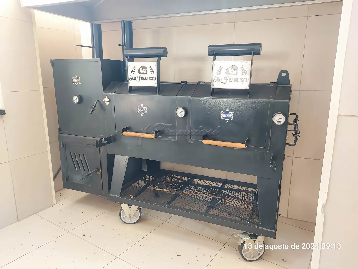 Salão amplo com 2 ambientes equipado com mesas, cadeiras e ar condicionado, balcão com choppeira, 2 banheiros sendo 1 masculino e 1 feminino, cozinha industrial com fogão industrial, 2 churrasqueiras sendo 1 tradicional e 1 parrilha, 1 pit smoker, 1 câmara fria, depósito e 1 banheiro. Com 12 câmeras e alarme.