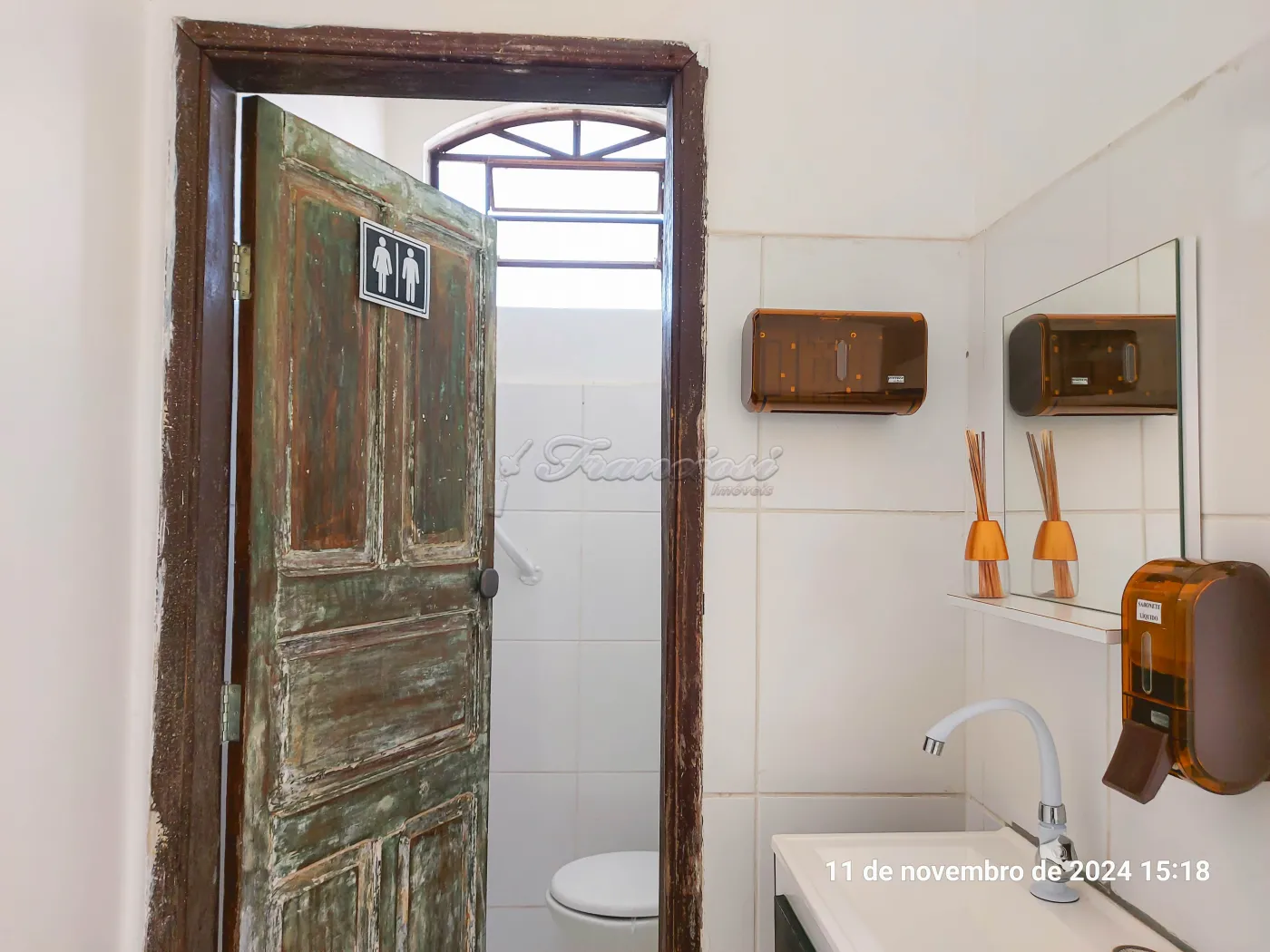 Salão comercial medindo aproximadamente 135,63 m² com 1 banheiro, 4 salas no fundo e copa.