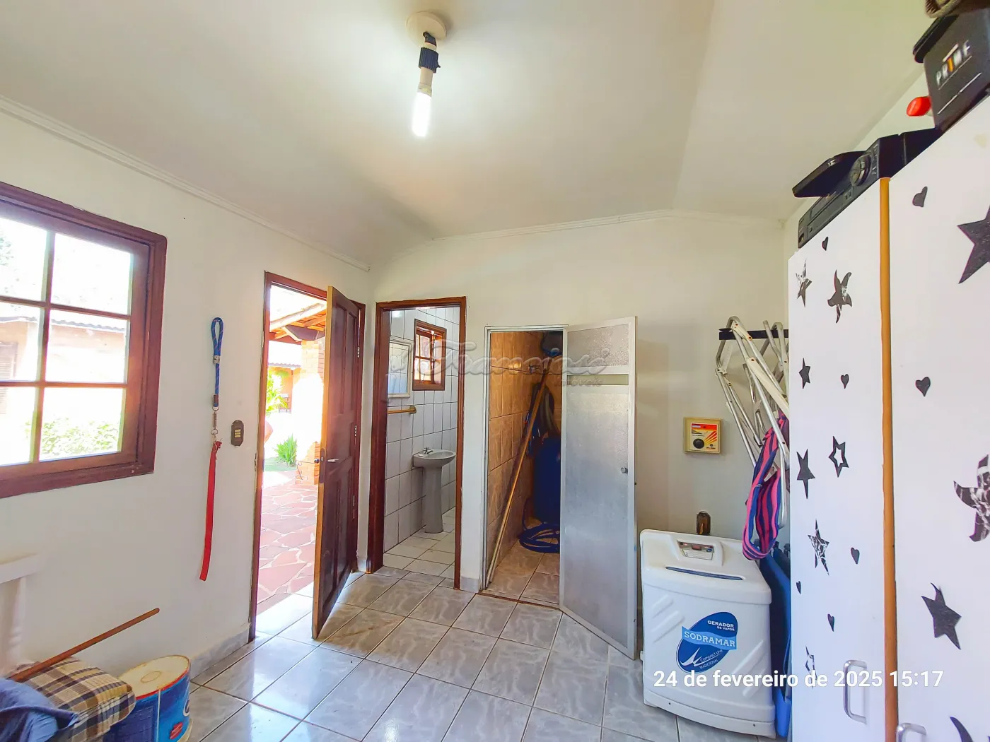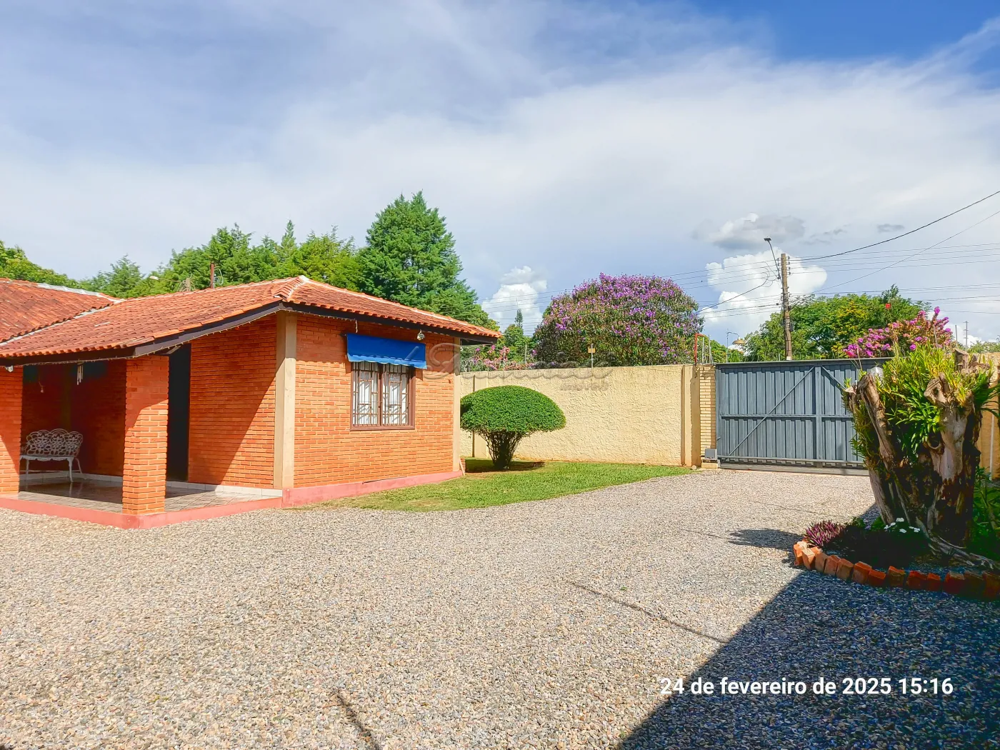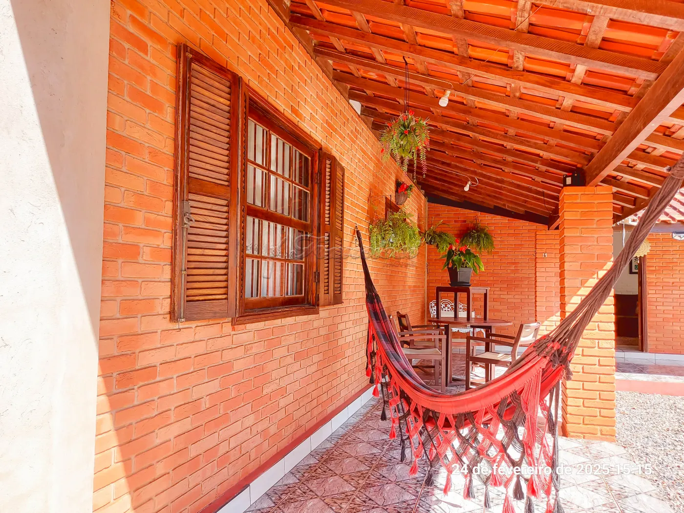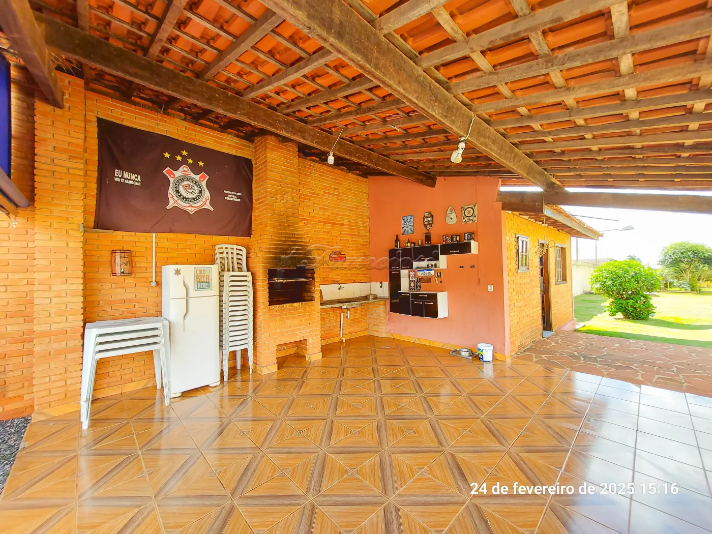 Casa com 3 suítes, sala de estar para 2 ambientes, cozinha, 1 banheiro social, despensa, área de serviço, edícula com 1 cômodo e banheiro, quintal grande, pomar, varanda, canil, campo de futebol, churrasqueira, salão de festas, piscina, sauna, garagem coberta para 2 carros e entrada para mais.