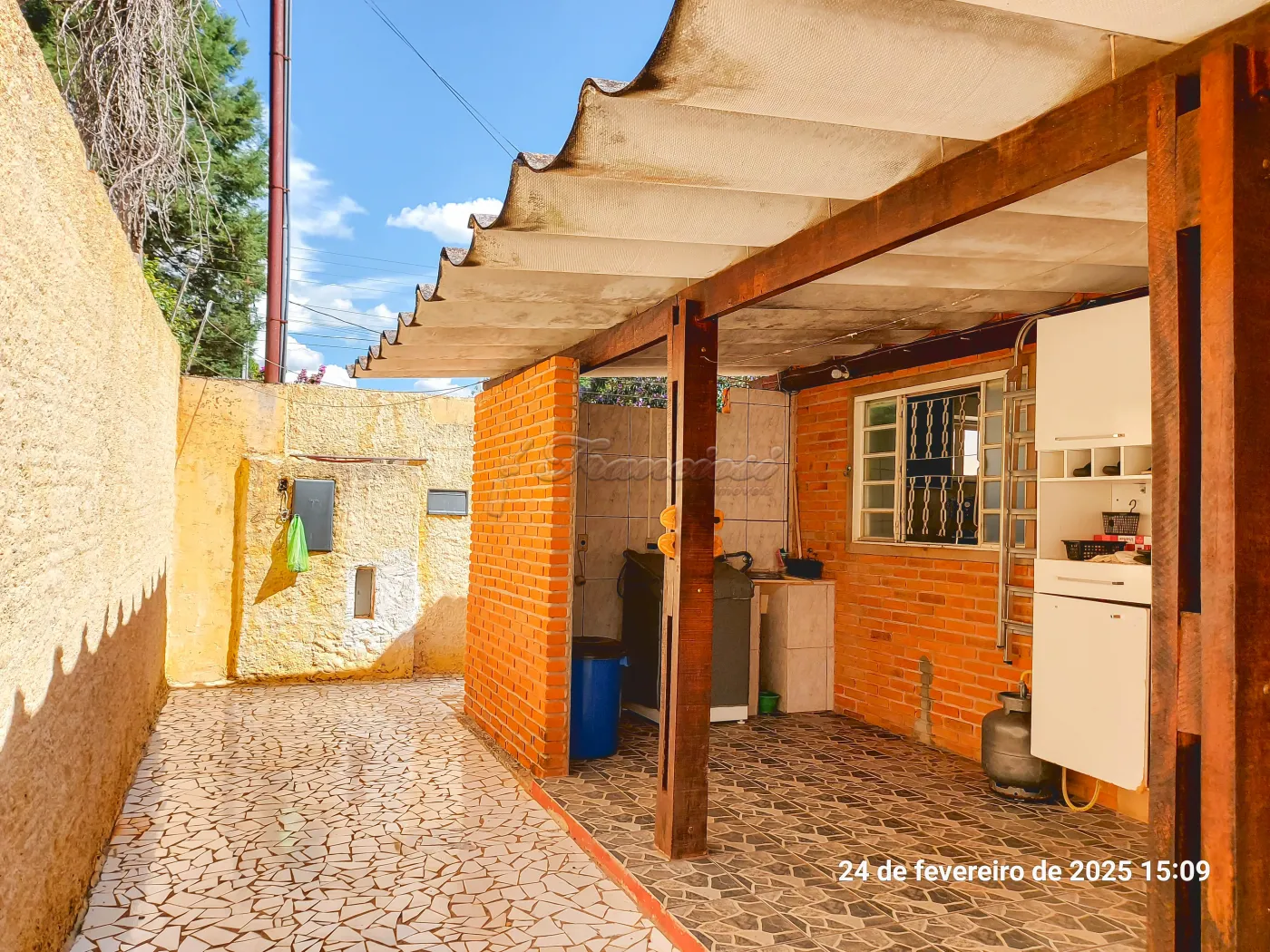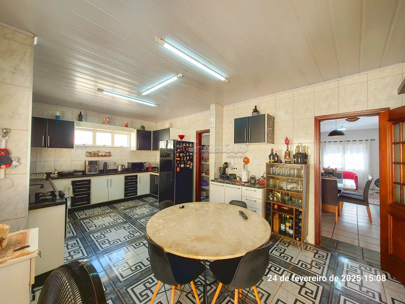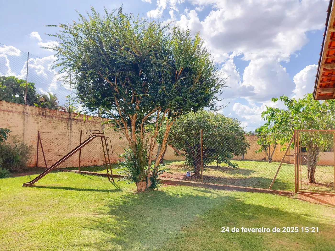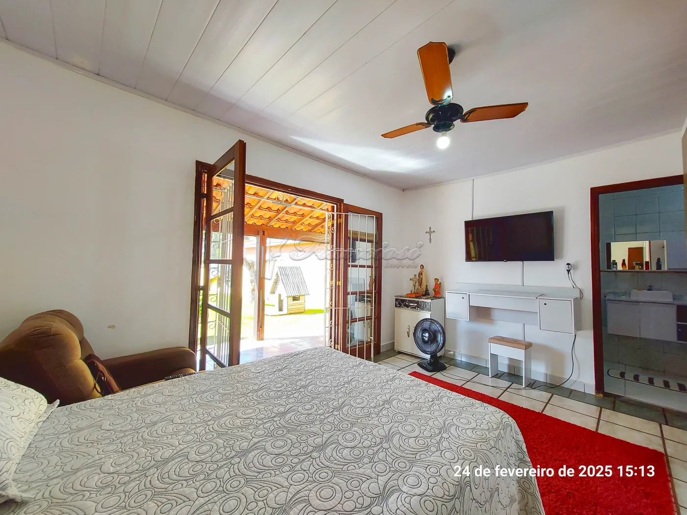 Casa com 3 suítes, sala de estar para 2 ambientes, cozinha, 1 banheiro social, despensa, área de serviço, edícula com 1 cômodo e banheiro, quintal grande, pomar, varanda, canil, campo de futebol, churrasqueira, salão de festas, piscina, sauna, garagem coberta para 2 carros e entrada para mais.
