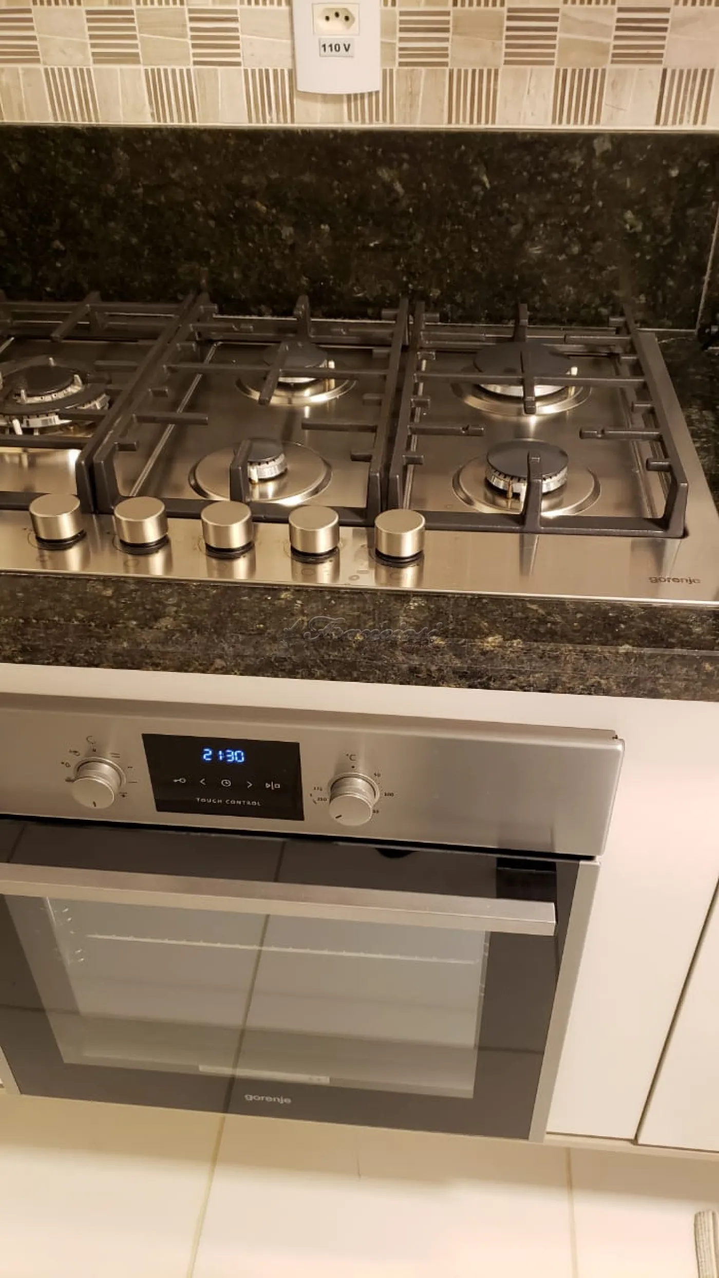 Mobiliado com: coifa, forno, lava e seca roupas, microondas, rack, tv, mesa, cadeira e sofá.