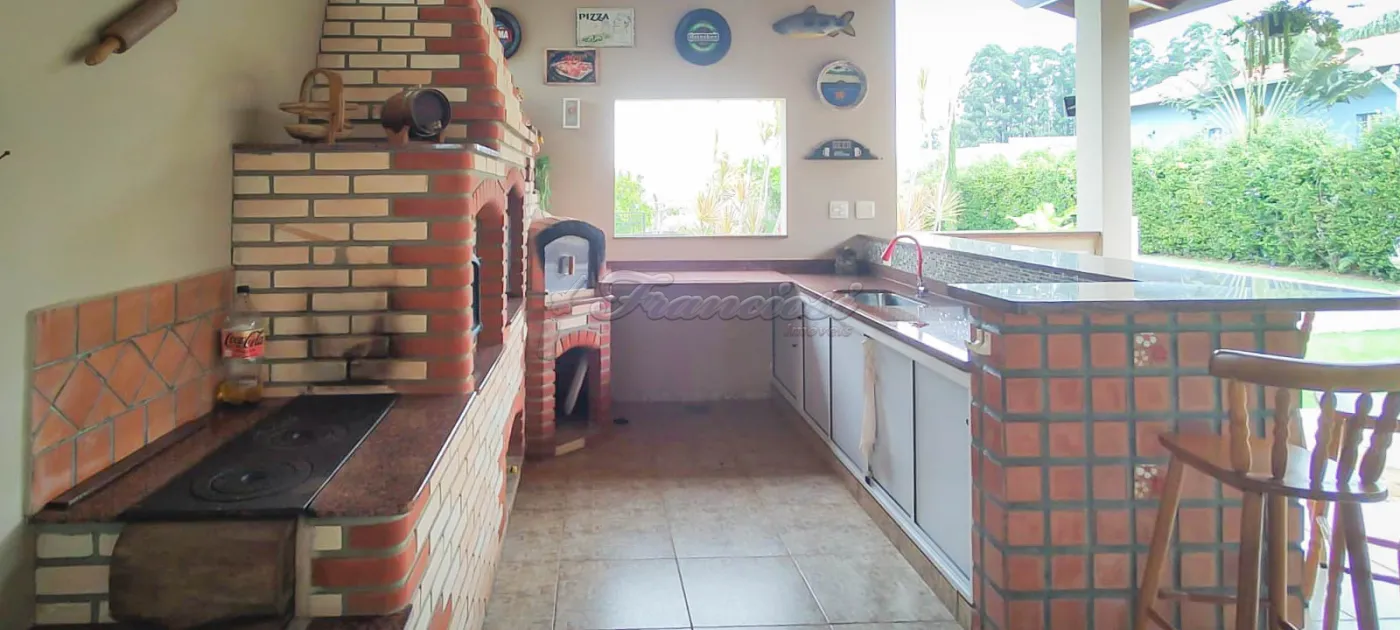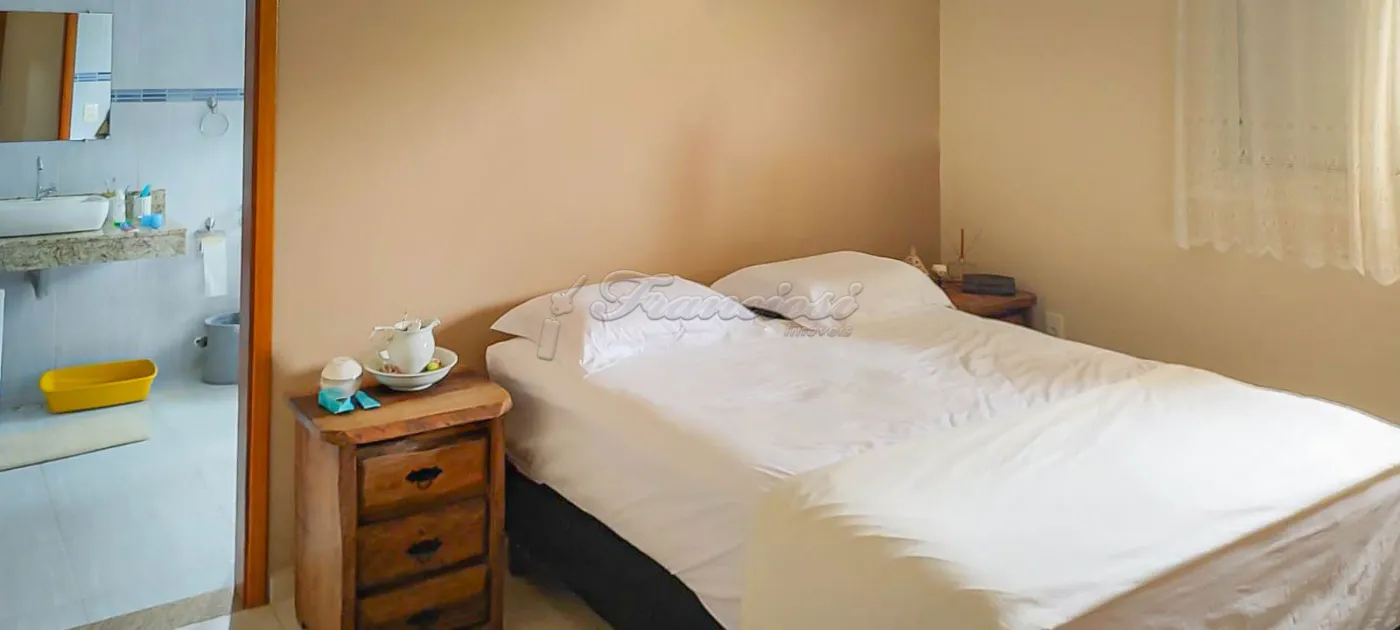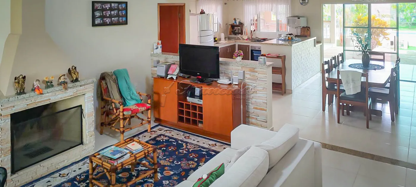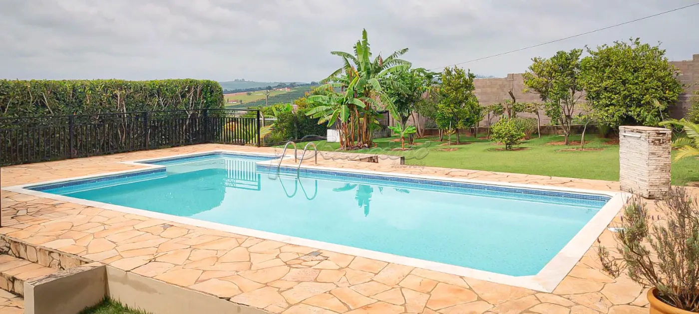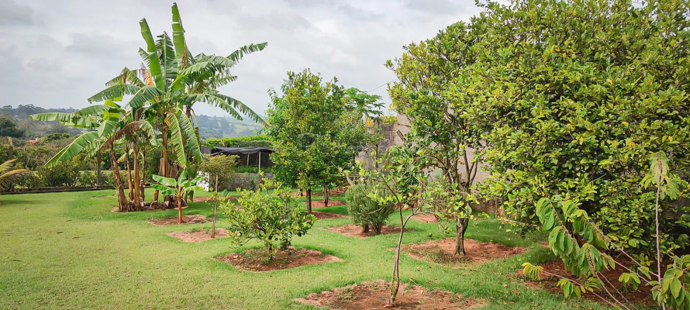 A área de lazer inclui espaço gourmet com churrasqueira, forno de pizza e fogão a lenha, além de piscina aquecida, sauna a vapor e banheiro externo. Possui ainda pomar, horta, quarto externo com despensa e garagem para 02 veículos, com vagas adicionais.