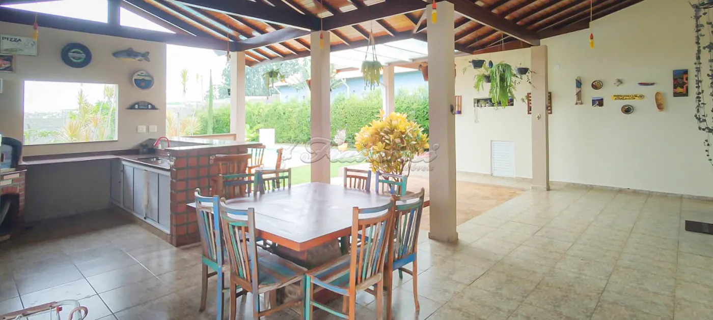 Chácara ampla localizada na cidade de Alambari, oferecendo conforto e lazer. O imóvel dispõe de 04 dormitórios, sendo 02 suítes, uma delas com hidromassagem. Os ambientes são integrados, incluindo cozinha, copa e sala de estar/TV. Conta com banheiro social e lavabo para atender os dormitórios e a área social. No piso superior, há um mezanino com sacada.