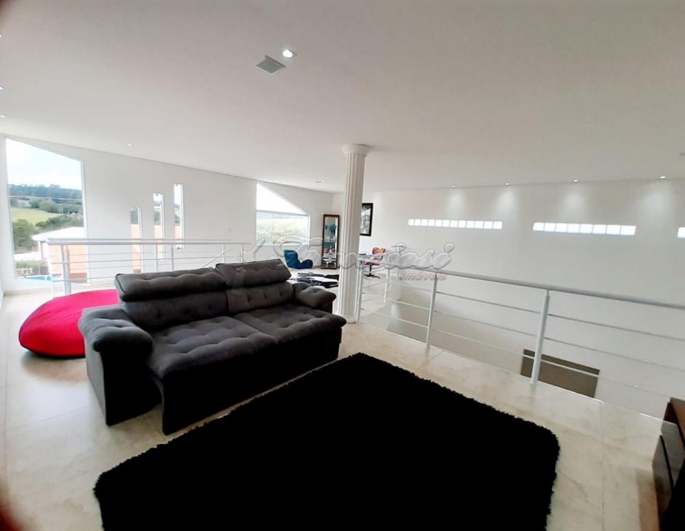 Casa em condomínio com 4 suítes, sendo 1 com closet, sala de jantar, sala de estar, sala de TV, lavabo, cozinha, despensa, lavanderia, piscina com aquecimento, sauna úmida, 2 dormitórios e 1 banheiro externo, churrasqueira com cozinha externa, garagem para 2 carros e entrada para vários.