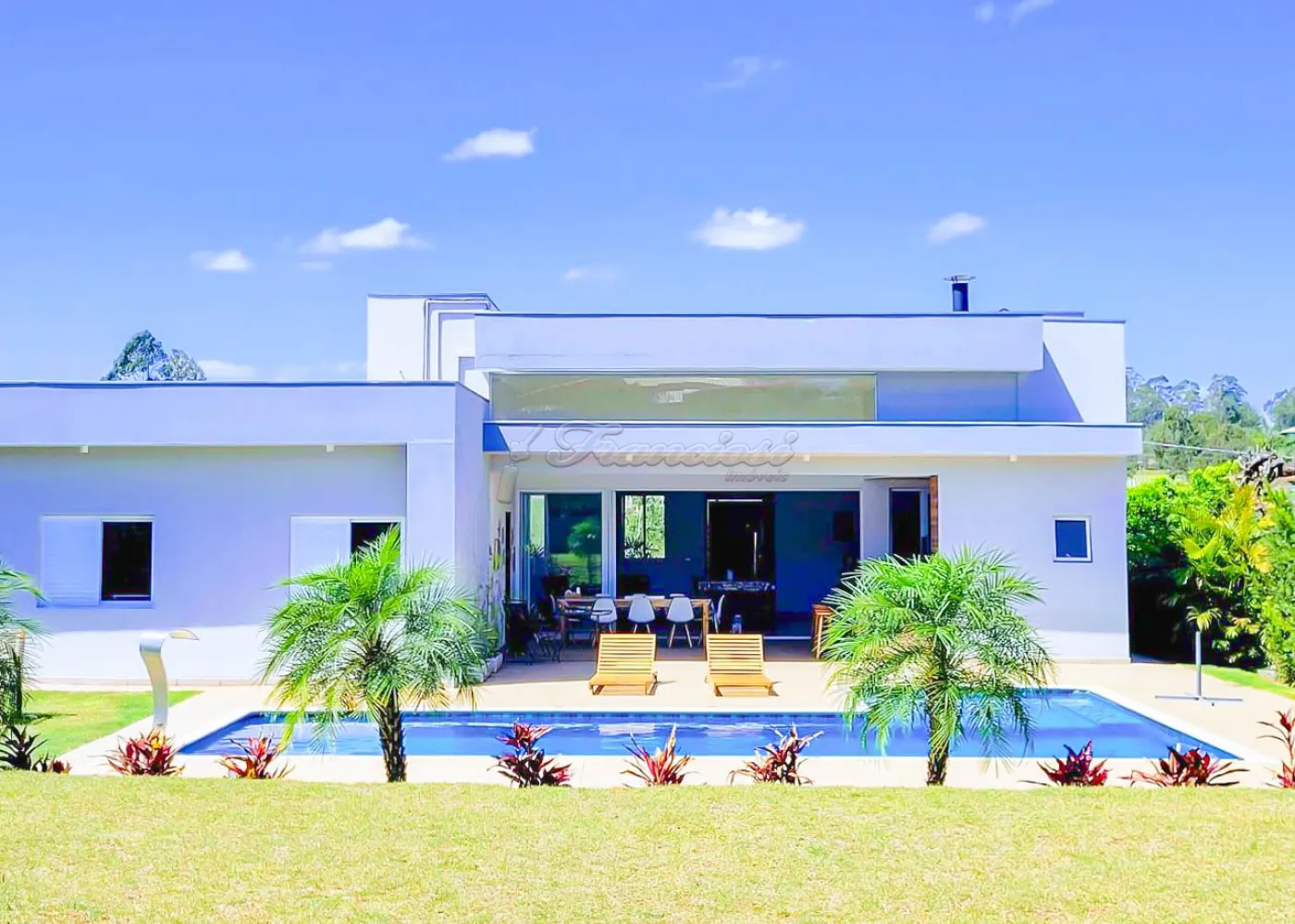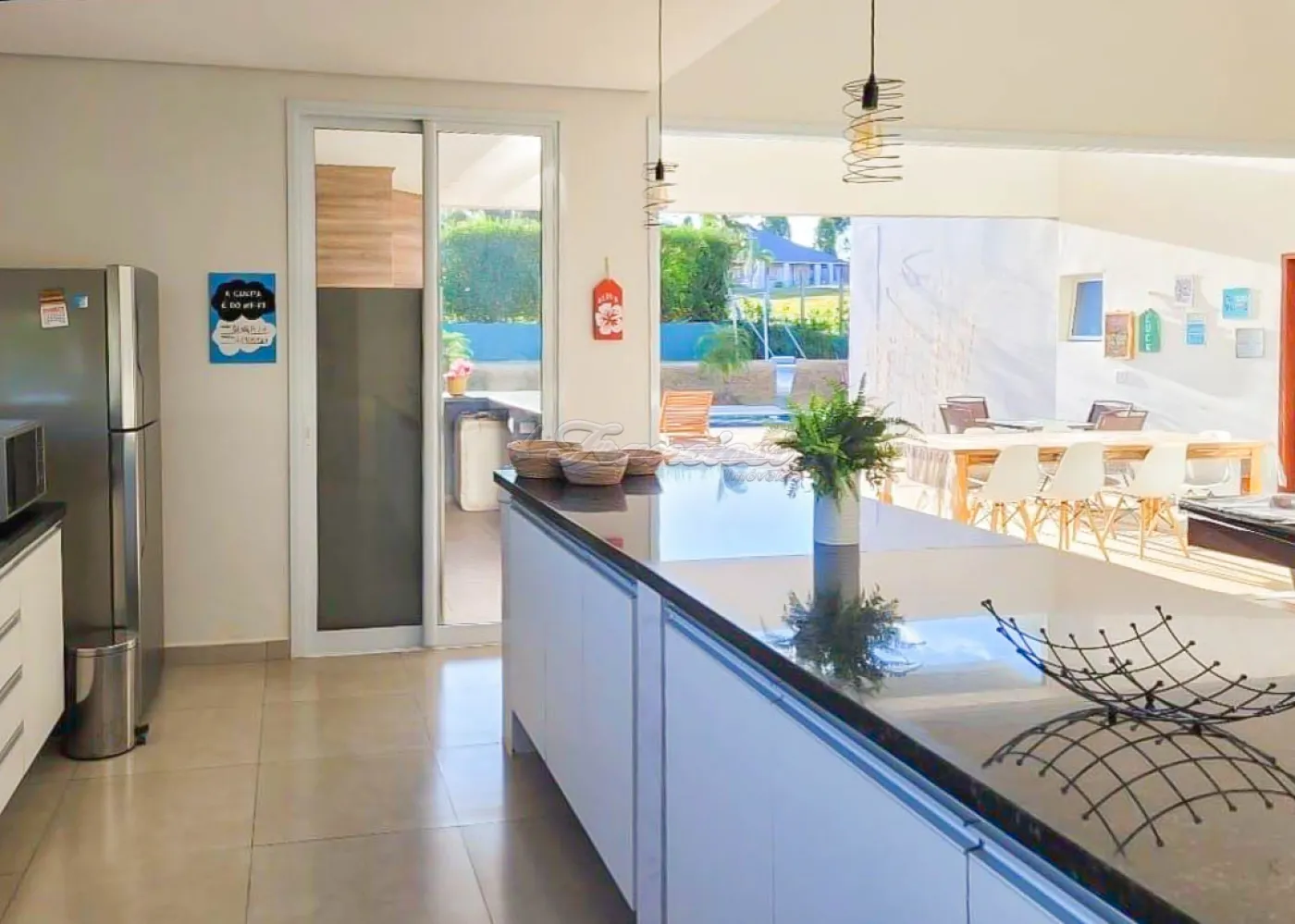 Imóvel localizado no Residencial Pinheiro no Lago, conta com 06 dormitórios, sendo 02 suítes, sala de estar, sala de jantar e cozinha integradas em ambiente amplo, banheiro social e lavabo. Dispõe de área gourmet com churrasqueira e forno a lenha, piscina, despensa, bar e área de serviço. Oferece ainda campinho de futebol, espaço com fogueira, sistema de energia fotovoltaica e garagem para 02 veículos cobertos e 02 descobertos.