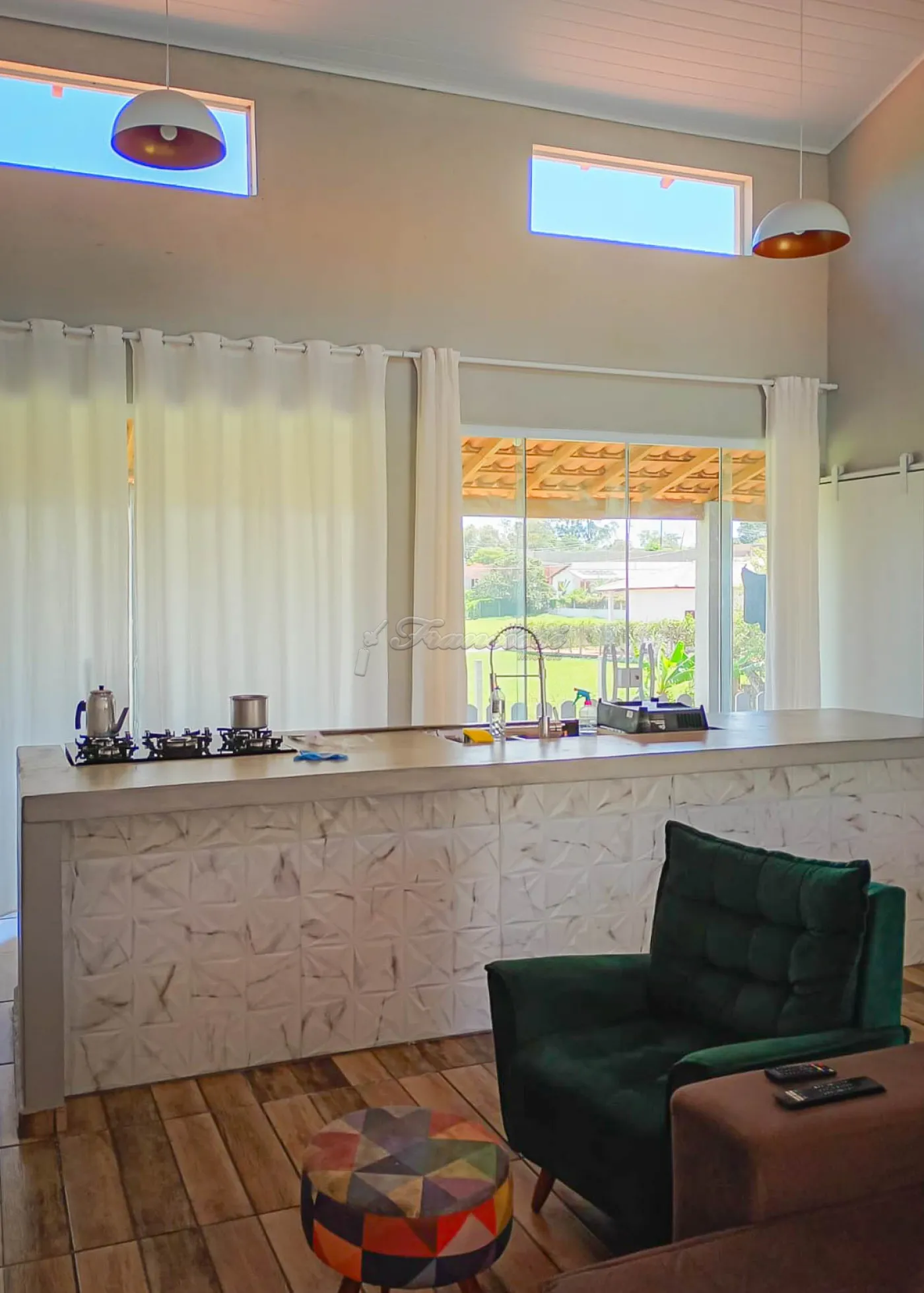 Chácara localizada no Residencial Pinheiro do Lago, composta por 02 suítes com mezanino na parte superior, sala de estar integrada à cozinha com ilha, despensa e banheiro social. Área gourmet externa com piscina e amplo espaço para estacionamento de vários veículos.