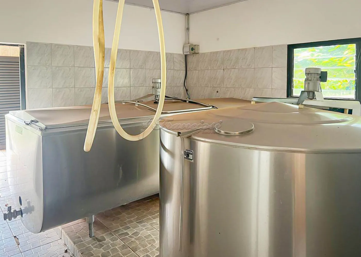 Área total de 51,8 alqueires A propriedade conta com excelente infraestrutura para produção leiteira, com estrutura galvanizada e galpão no sistema Free Stall para produção de 5 mil litros por dia, barracão espinha de peixe para 12 animais, resfriador, escritório.