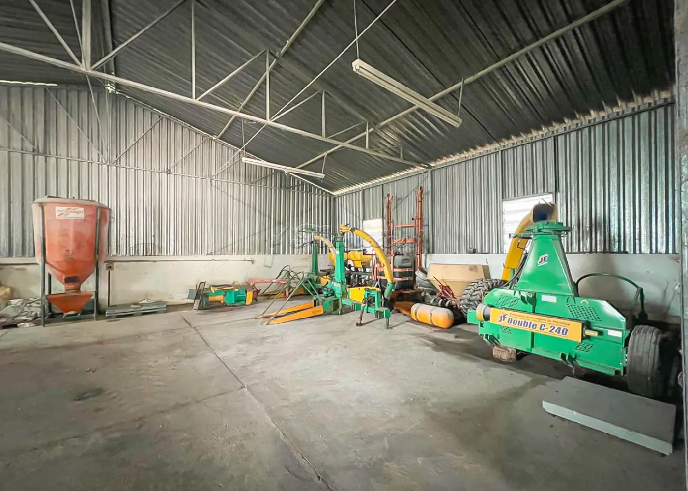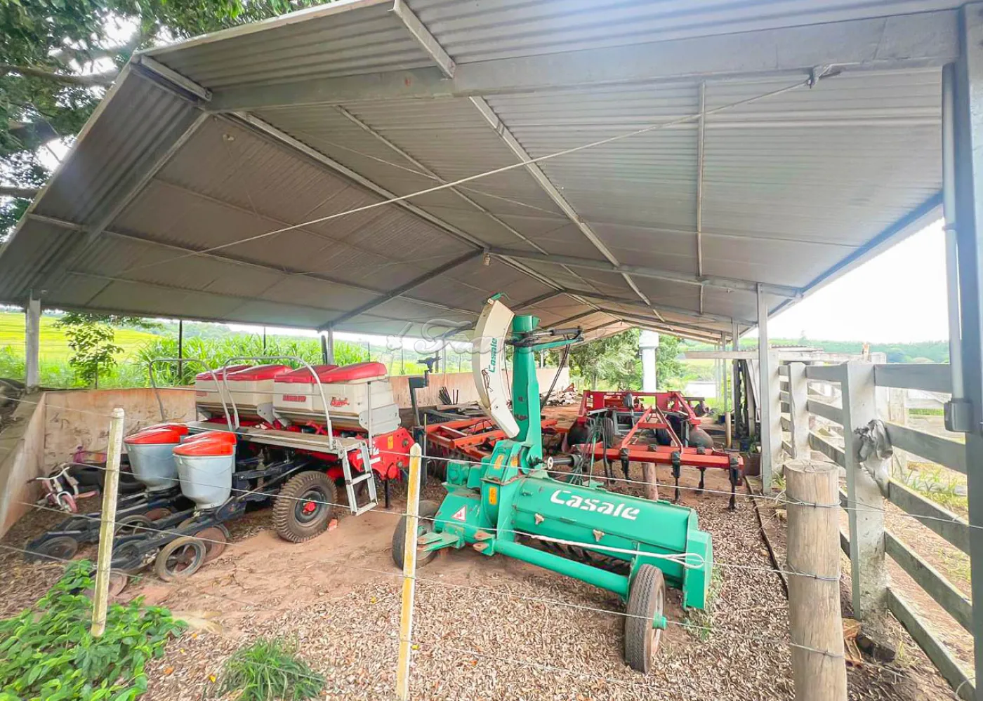 Possui 4 baias para cavalos, mangueira com tronco e balança, 3 barracões para implementos, 5 silos, 1 barracão para bezerreiro, matadouro, barracão com 22 baias para porcos e outro com 35 baias para ovinos e caprinos. Acompanha 7 tratores com implementos.