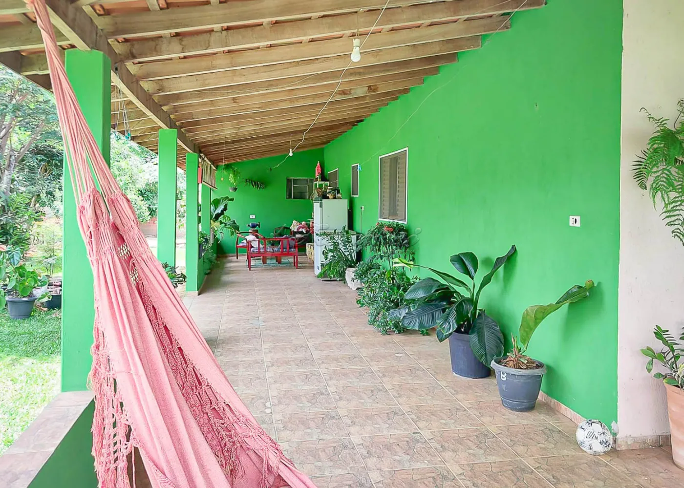 Chácara com 04 dormitórios, sala ampla com varanda, cozinha, banheiro social, quintal com gramado, pomar produzindo e vaga para vários carros.
