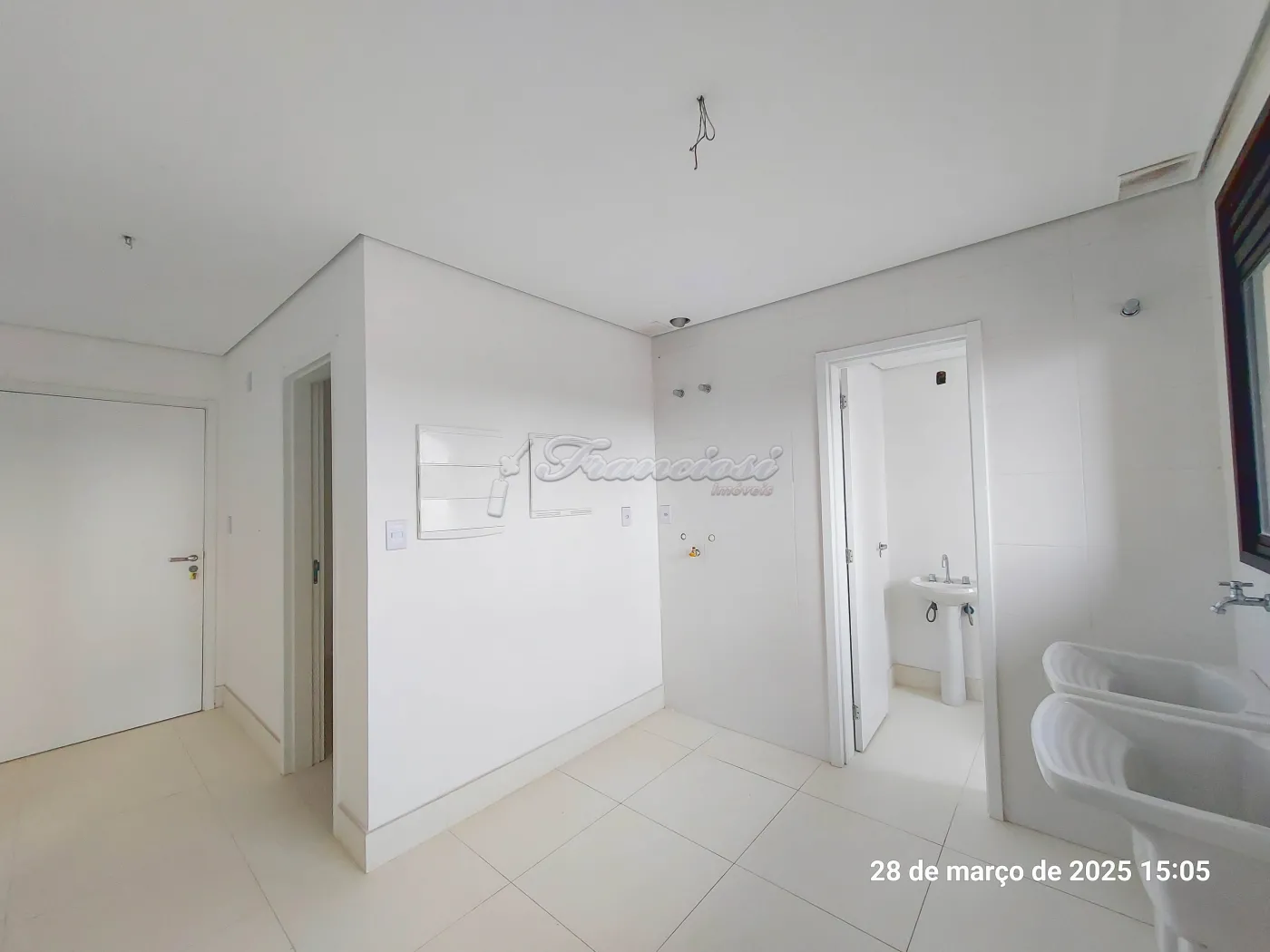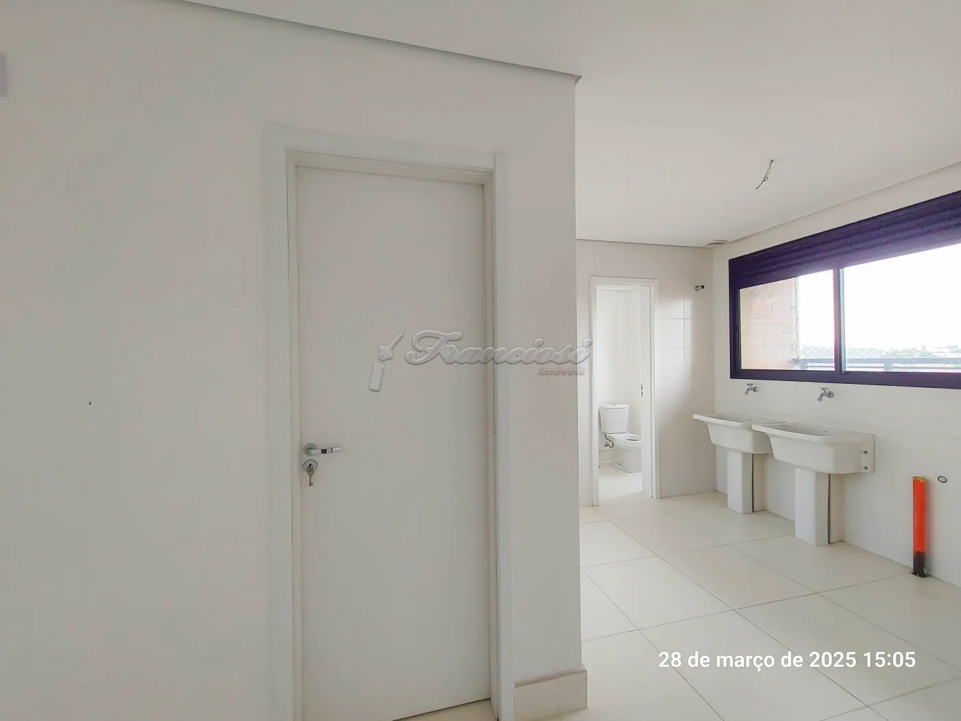 O acabamento conta com piso laminado em todos os ambientes secos e piso nas áreas molhadas.