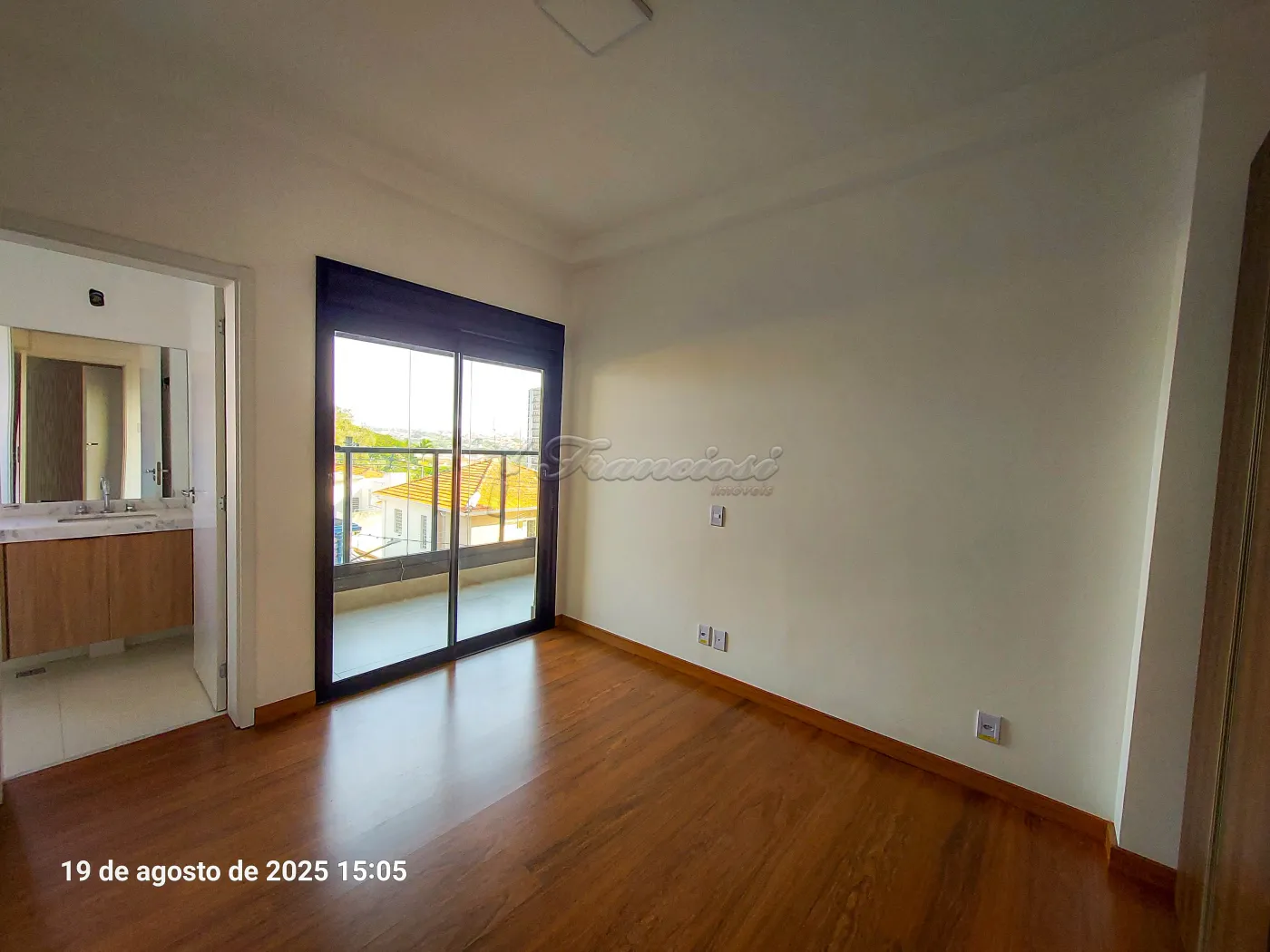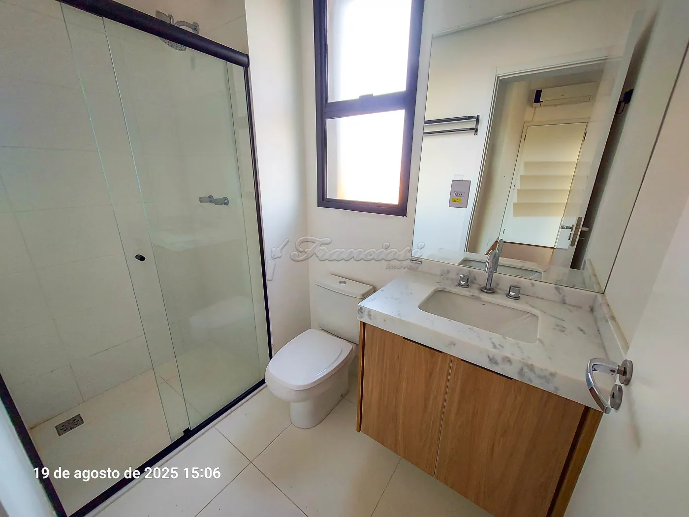 O acabamento inclui porcelanato, piso laminado, fechadura eletrônica e ar-condicionado. O imóvel dispõe de 03 vagas de garagem.