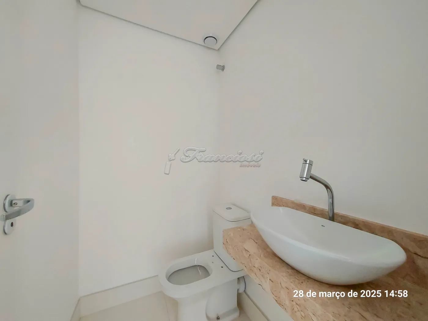 O acabamento conta com piso laminado em todos os ambientes secos e piso nas áreas molhadas.