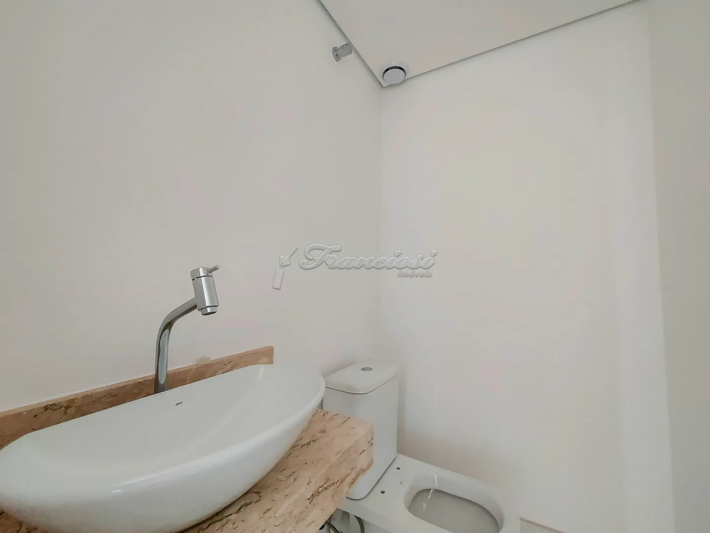O acabamento conta com piso laminado em todos os ambientes secos e piso nas áreas molhadas.