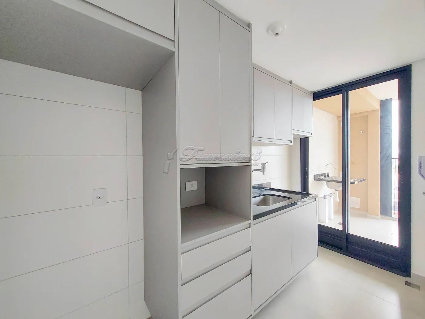Studio Gourmet com sala, cozinha, 1 banheiro social, área de serviço, varanda gourmet com churrasqueira e vaga coberta para 1 carro.