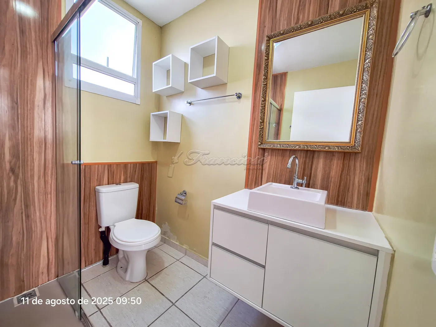 Acabamento em azulejo e piso laminado, proporcionando praticidade e bom padrão de conservação.