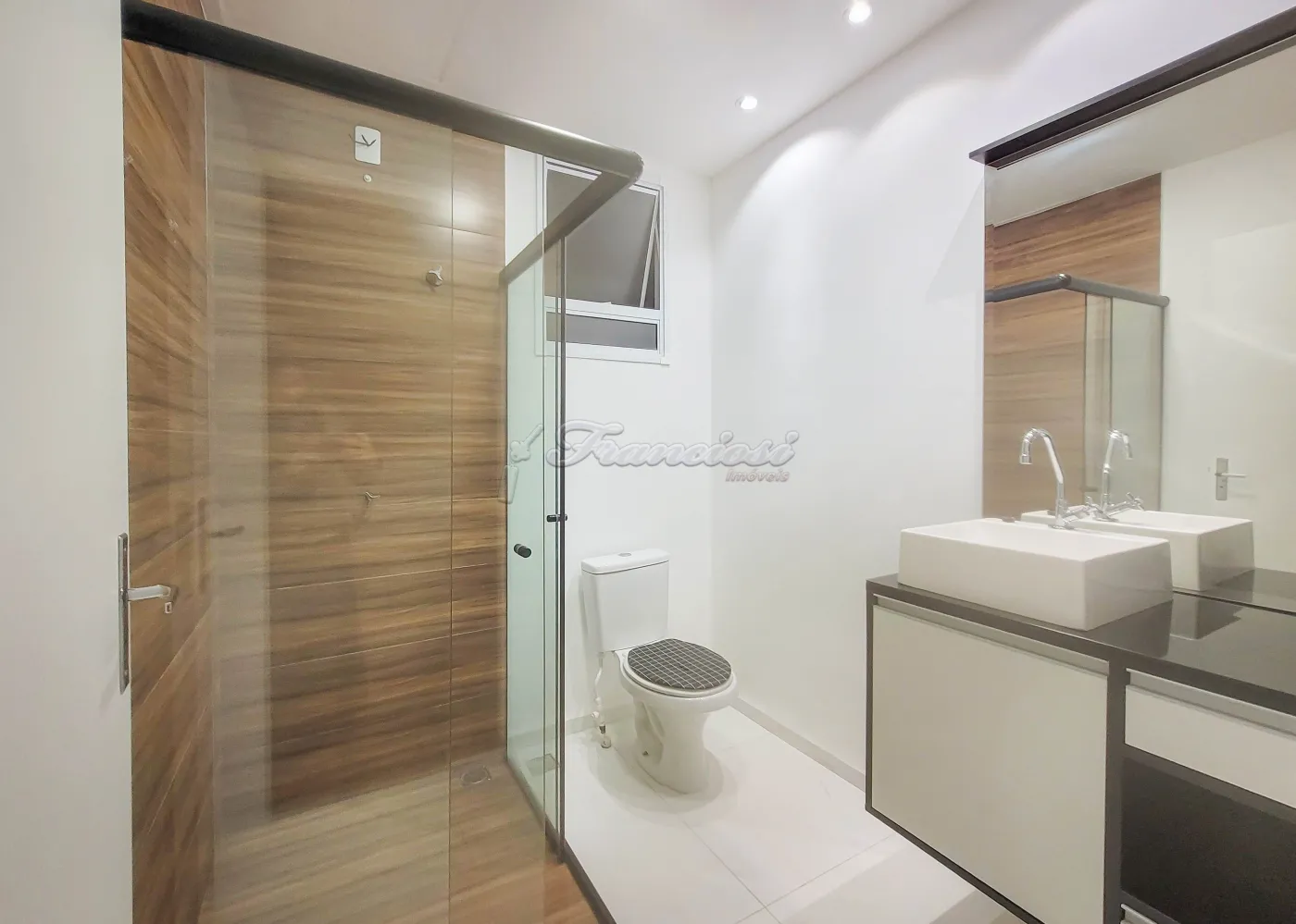 Apartamento com 2 dormitórios, sala com painel, cozinha com armário planejado, 1 banheiro social com box blindex e gabinete, área de serviço e vaga para 1 carro.