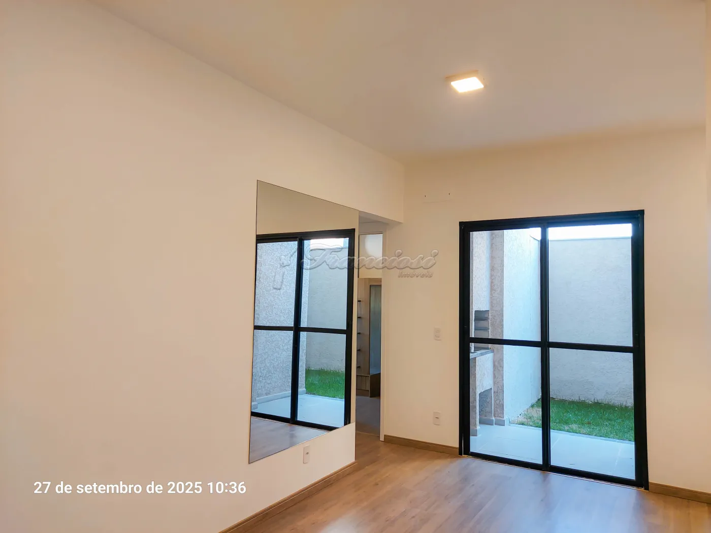Apartamento com 2 dormitórios sendo 1 suíte com gabinete, sala de estar, cozinha com gabinete, 1 banheiro social com gabinete, área de serviço, varanda gourmet com churrasqueira a carvão, quintal com grama e vaga para 1 carro. Com armário planejado nos dormitórios.