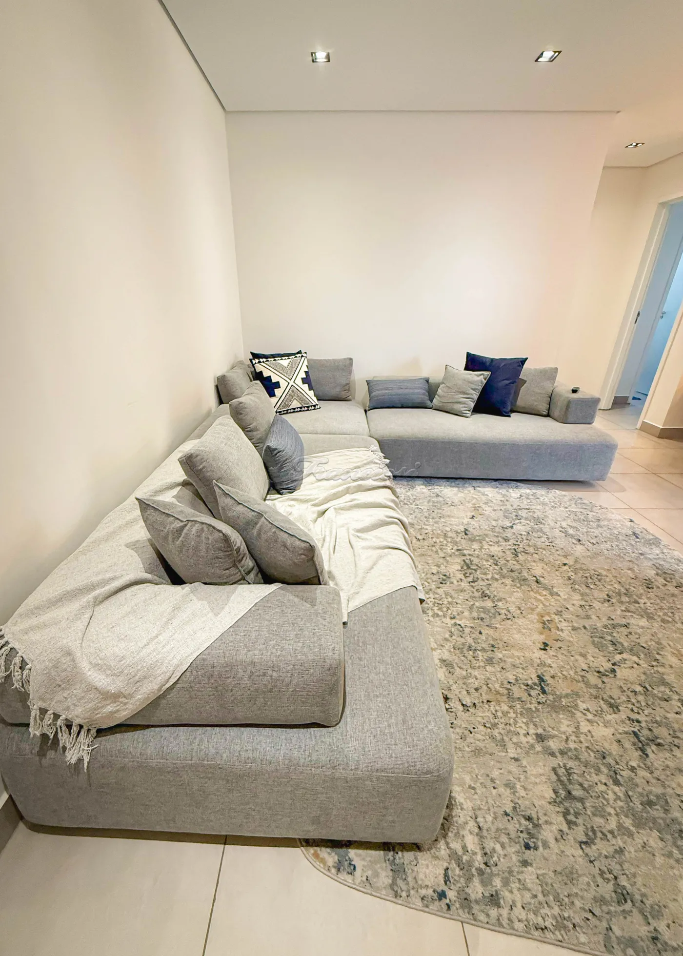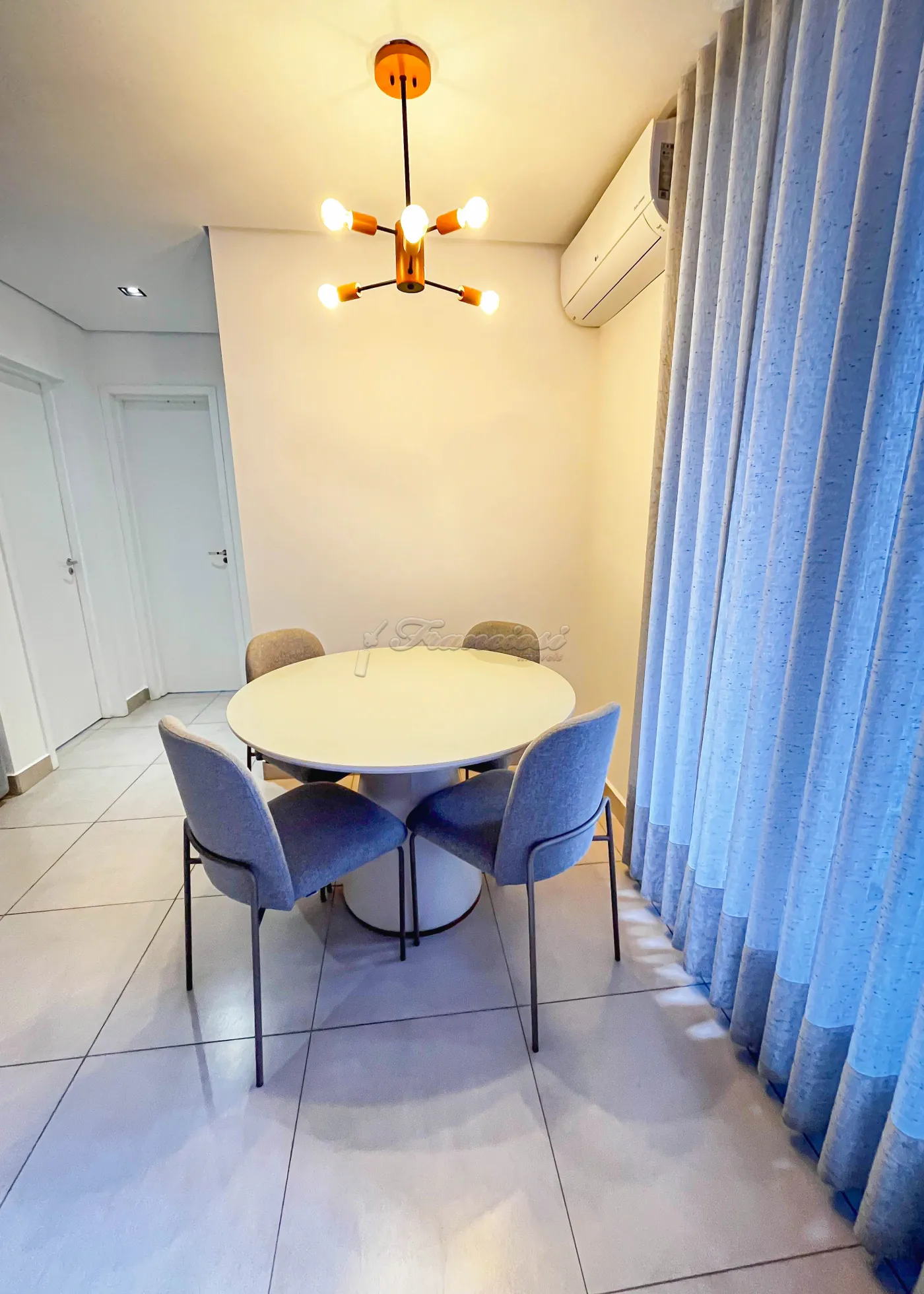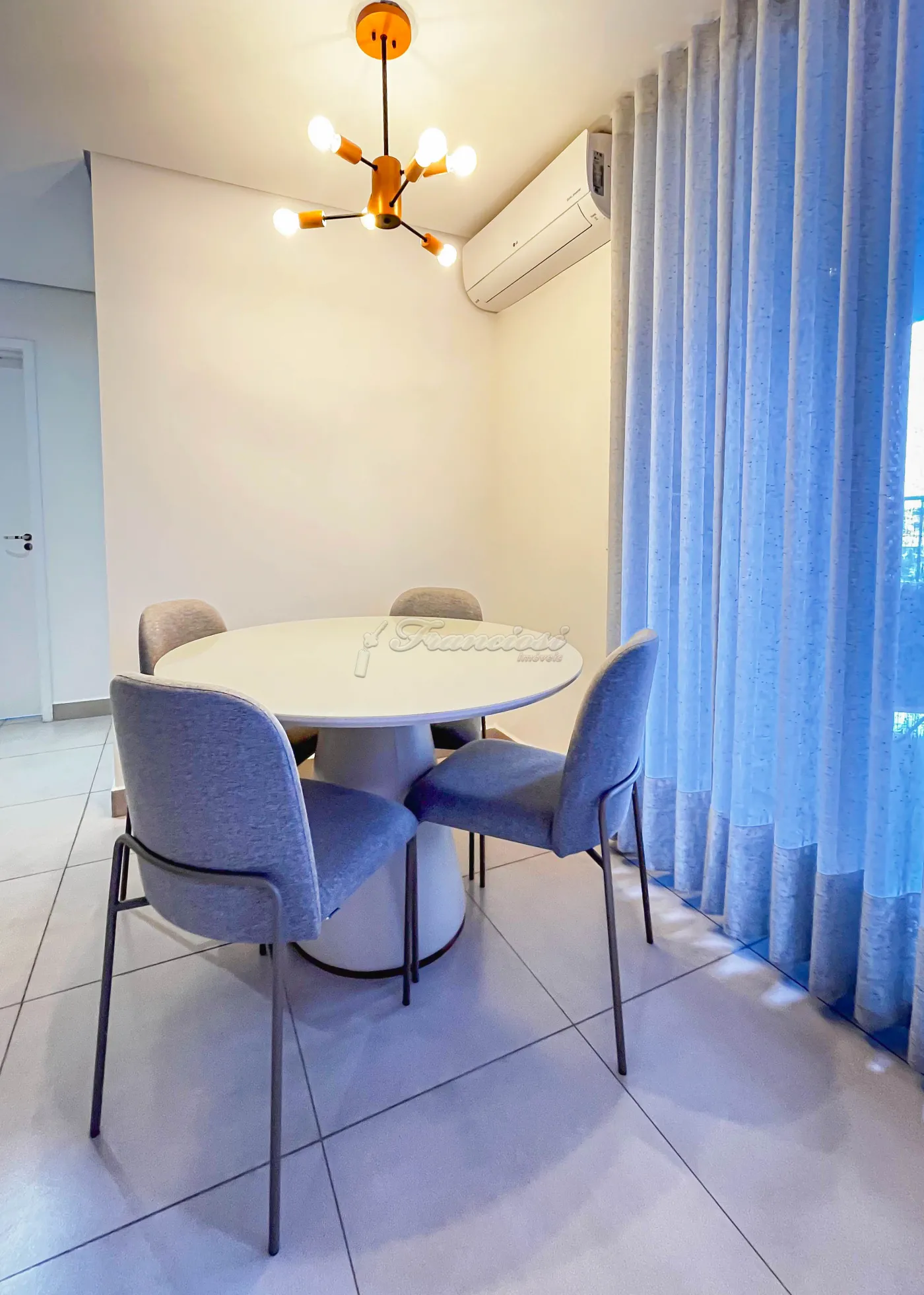 Acabamento e mobiliário: bancada em quartzo branco, armários planejados, mesa de jantar para 04 lugares, sofá modulado, cama box king, 01 cama queen, 02 mesas de cabeceira, 02 duchas, além de ar-condicionado de 12.000 e 9.000 e piso frio.