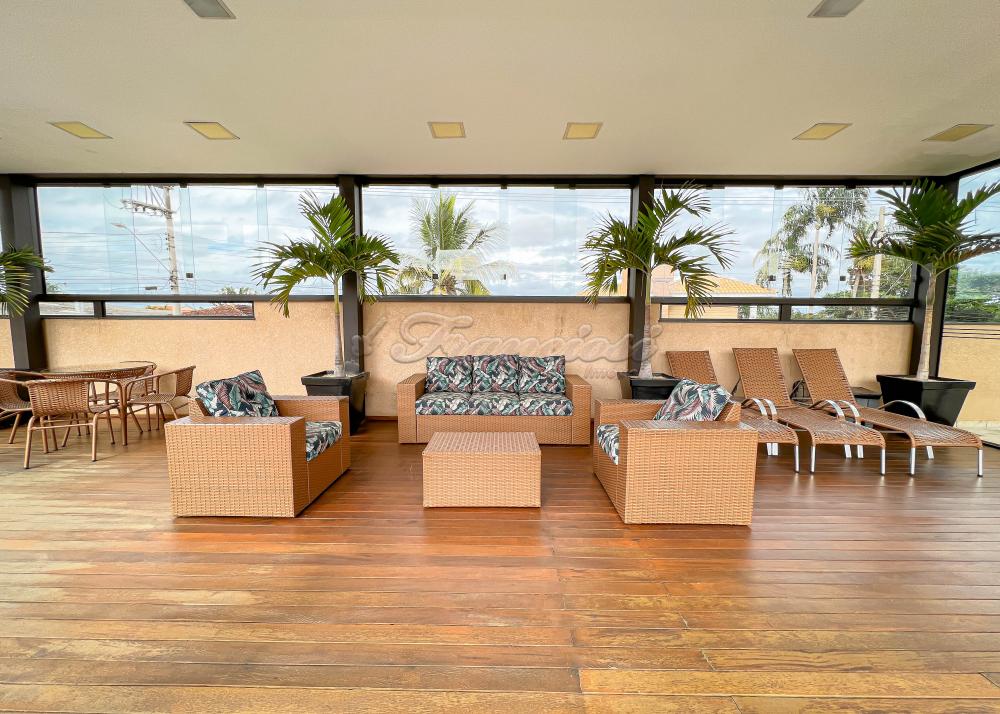 O condomínio oferece: portaria, área de convivência com piscina e academia.