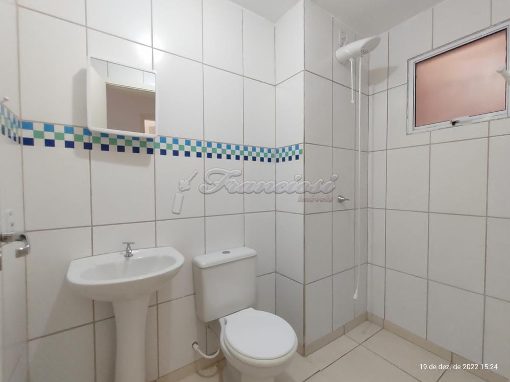 Acabamento: laje, piso frio, cozinha e banheiro azulejados até o teto.