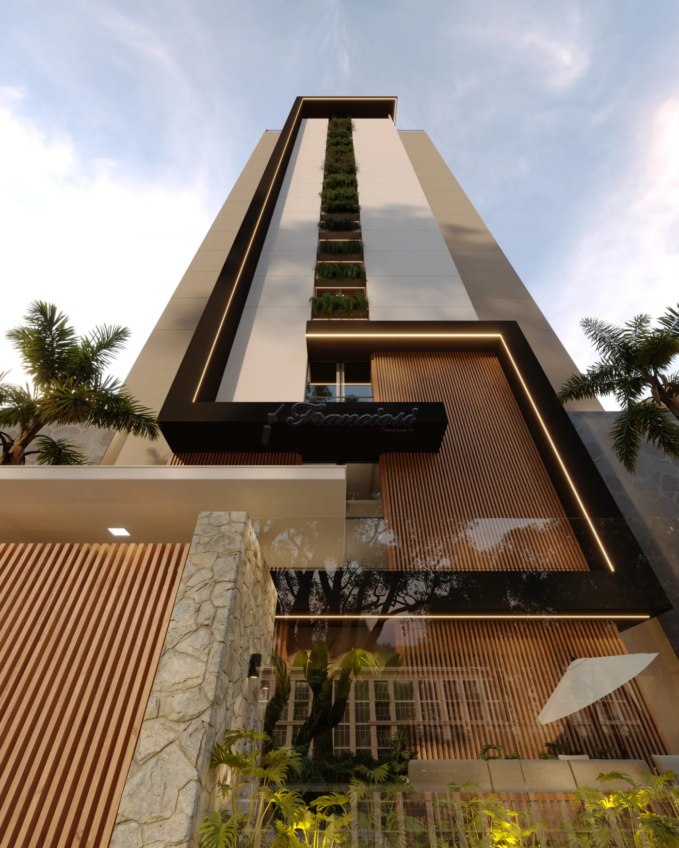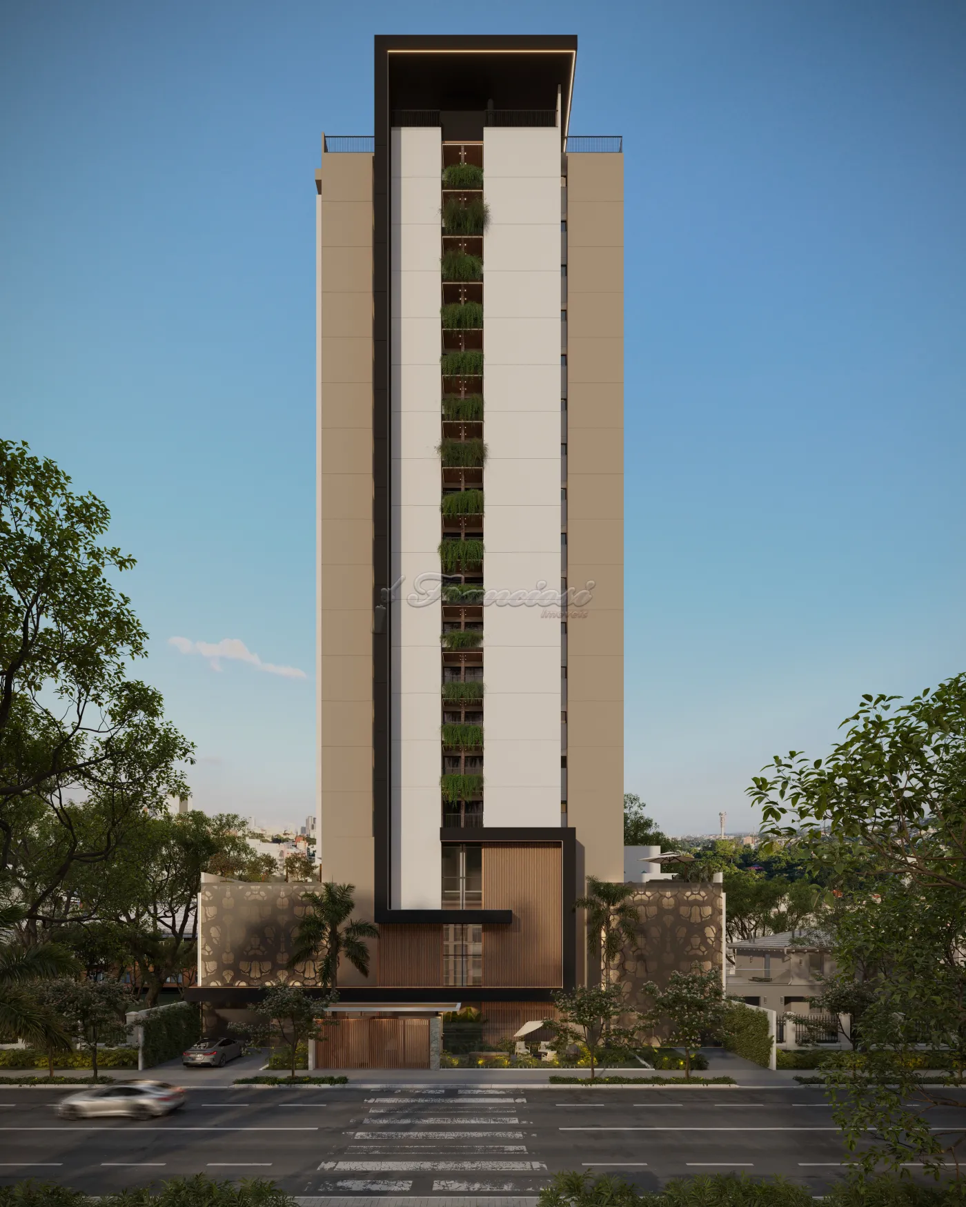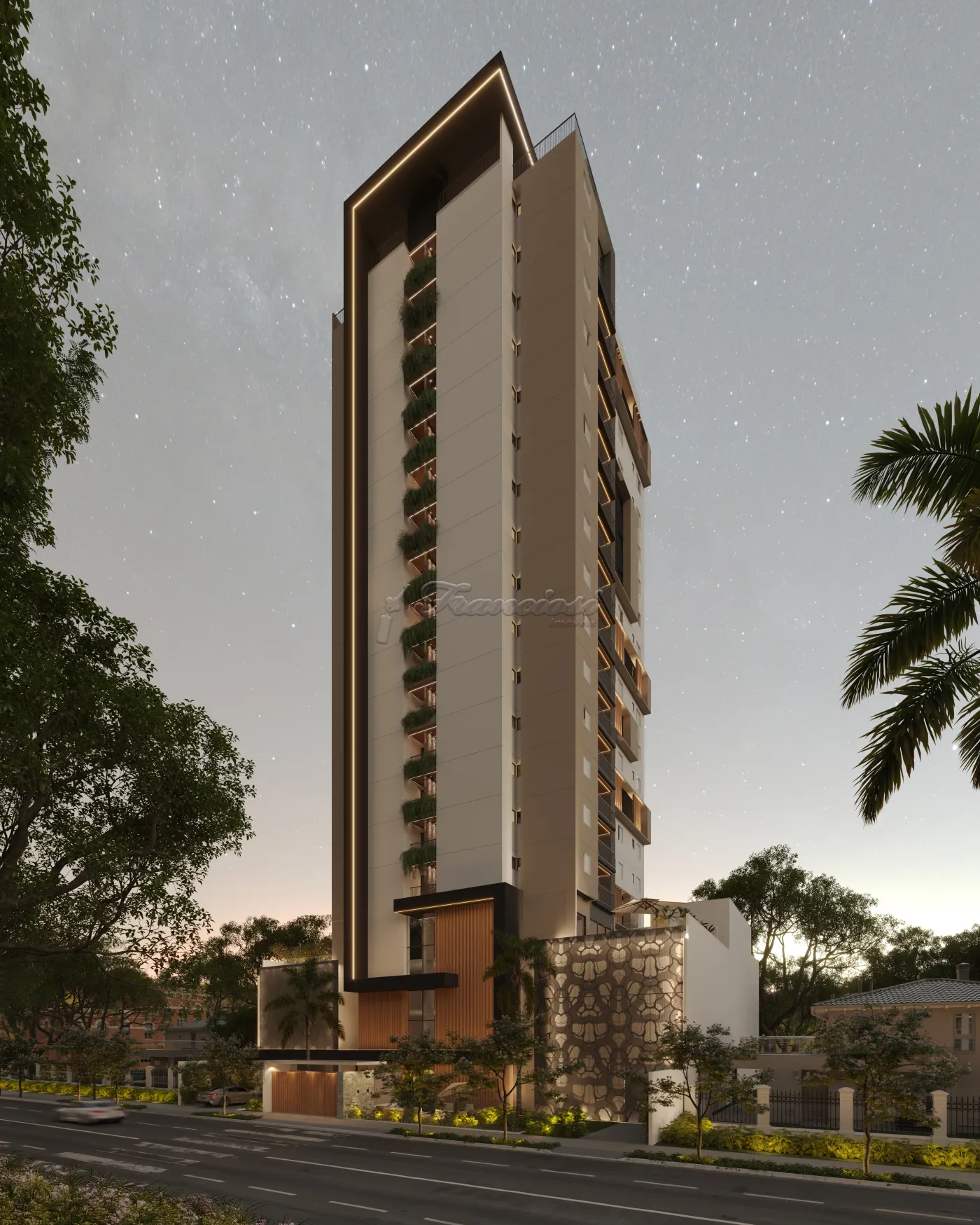 Studio dispõe de uma suíte privativa, sala de estar e jantar integradas, cozinha e lavanderia integradas, varanda gourmet, com churrasqueira a carvão.