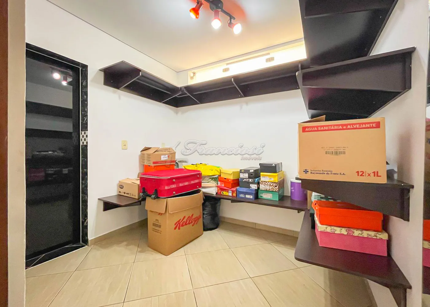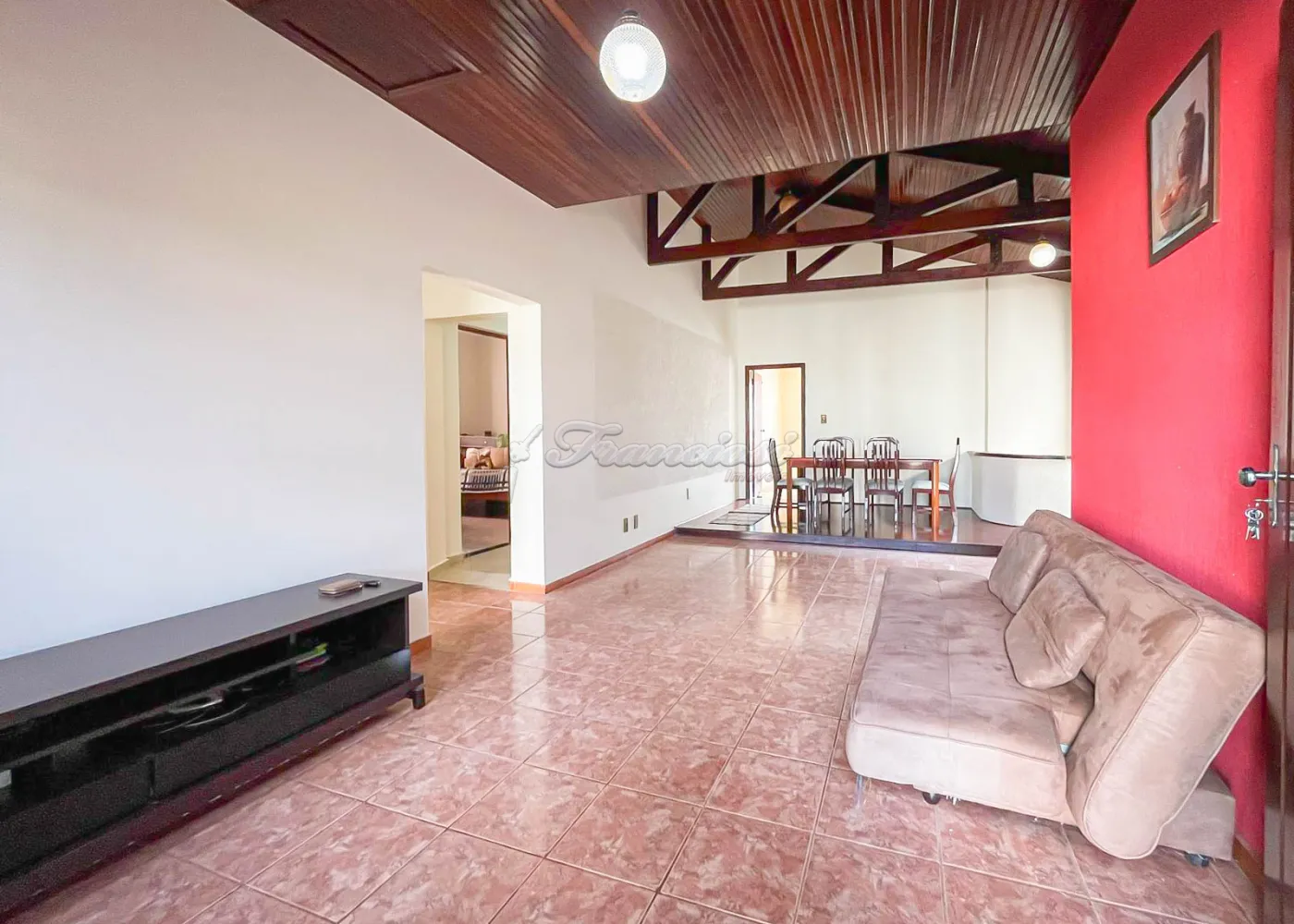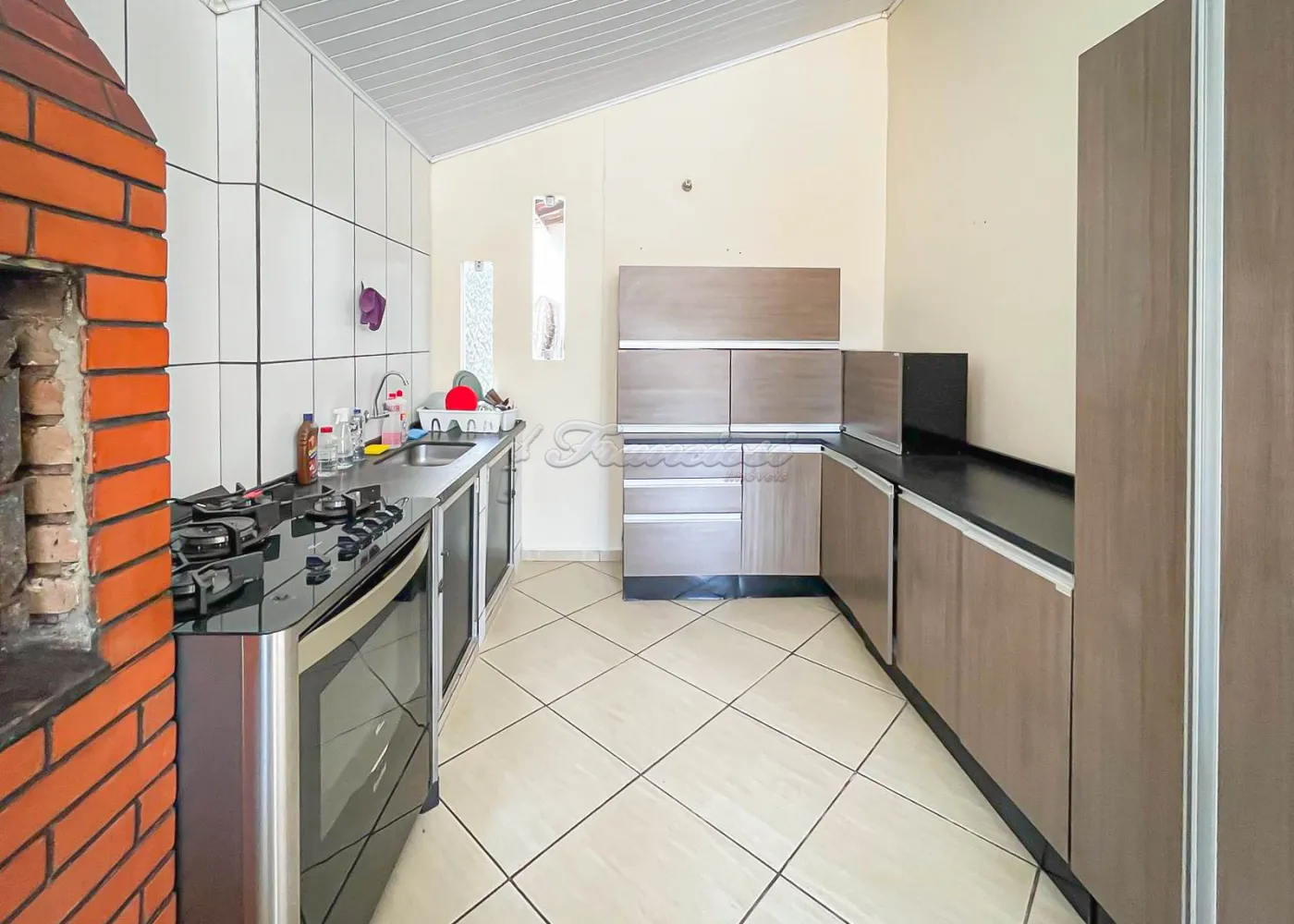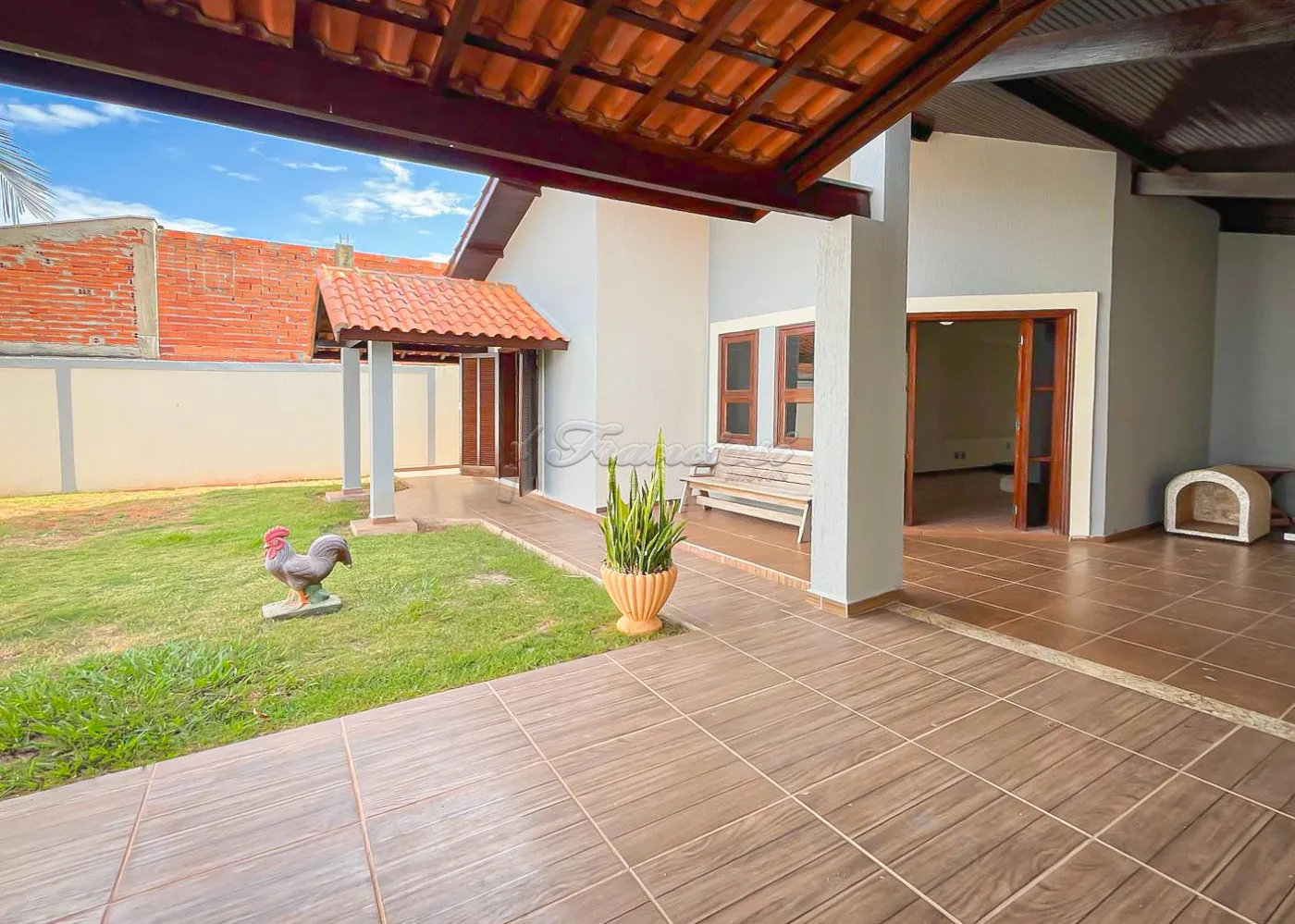 O imóvel possui acabamento com forro de madeira nas salas, forro de PVC na cozinha, laje nos quartos e piso frio em toda a casa.