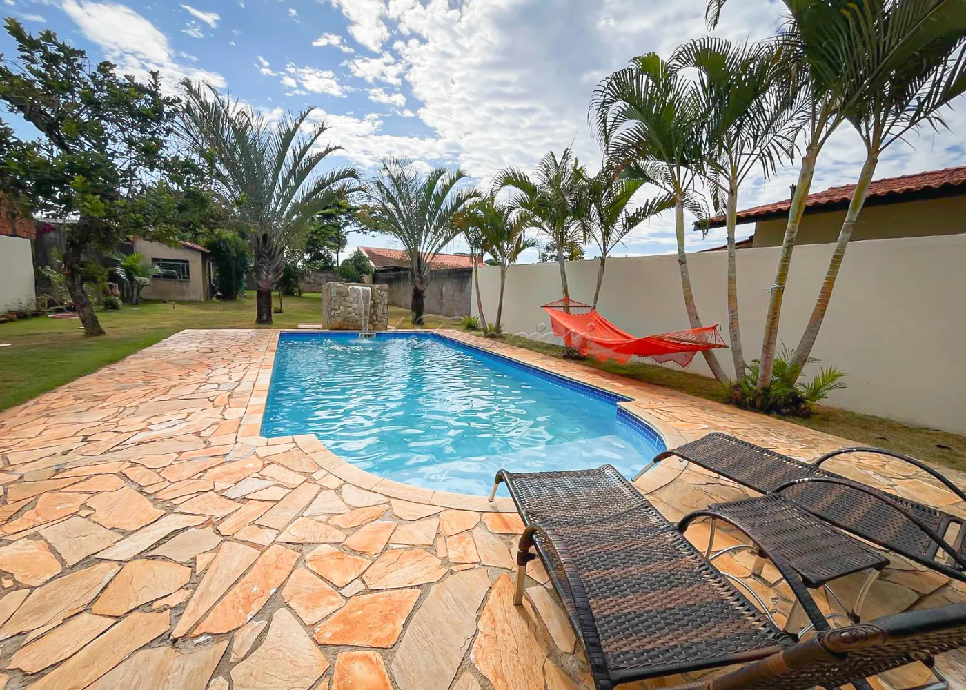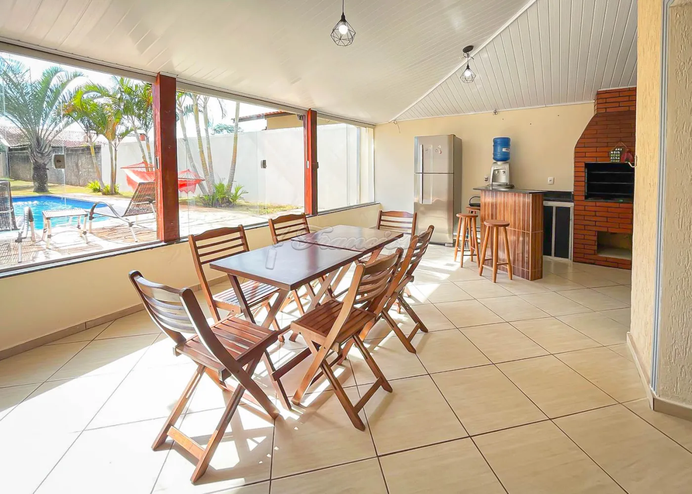 Chácara localizada na Estância Conceição, com 03 dormitórios, sendo 01 suíte com closet, 03 ambientes de sala, cozinha ampla, banheiro social, área gourmet integrada à cozinha, piscina, garagem para 03 veículos e uma área verde nos fundos.