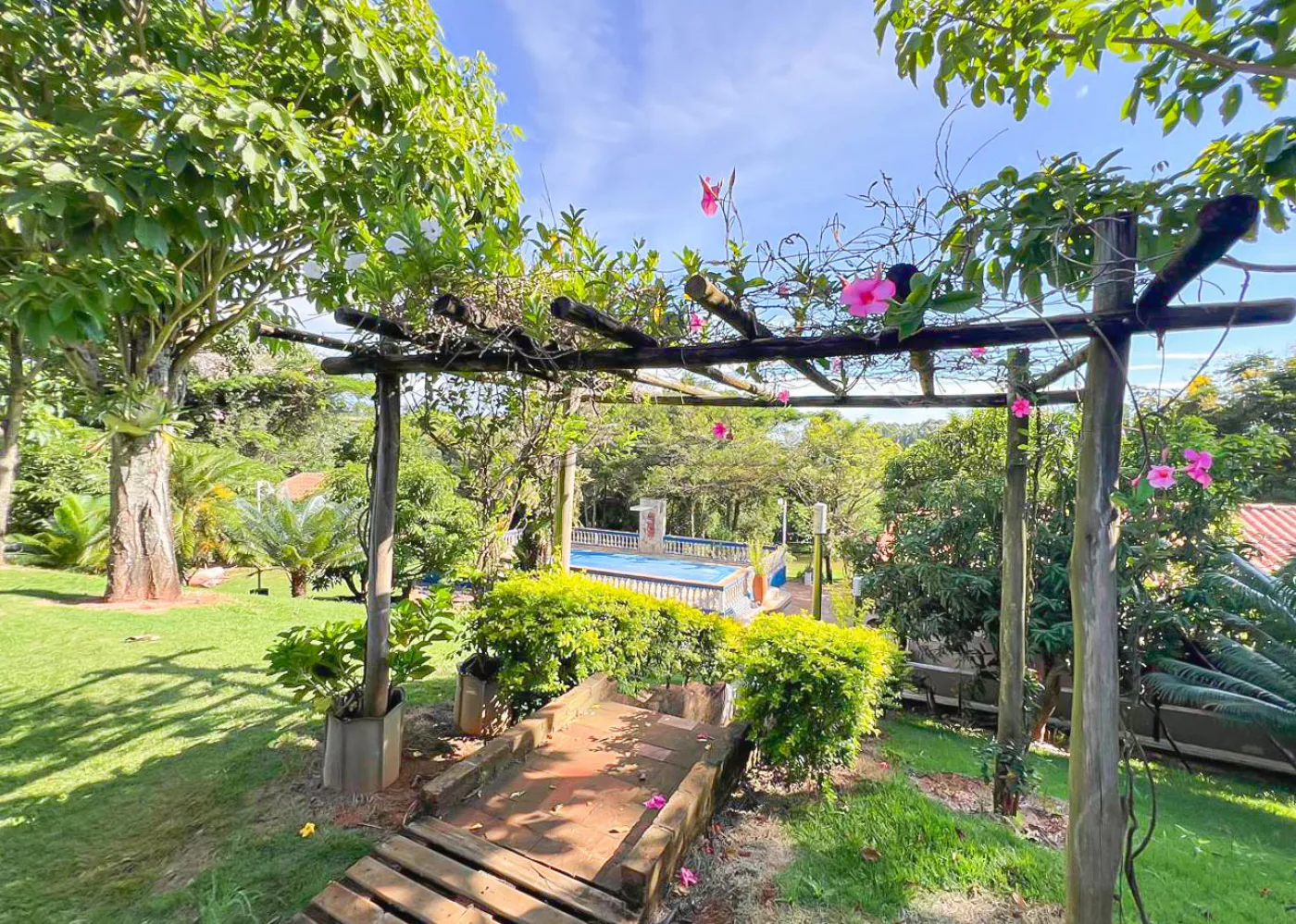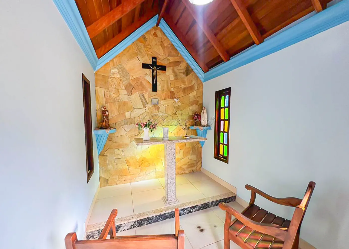 Linda chácara com 12.000,00 m² de área ampla e com paisagismo; dispõe de uma casa de moradia com 03 dormitórios, sendo 01 deles suíte. Sala de estar, cozinha e banheiro social - cômodos amplos e arejados; varanda e garagem para 02 carros cobertos e vagas para demais descobertos. Área gourmet com churrasqueira, piscina, horta, pomar e uma bela capela. Entrega ainda 04 tanques com peixes, 02 poços caipira e 01 poço artesiano com 05 mil litros/hora.