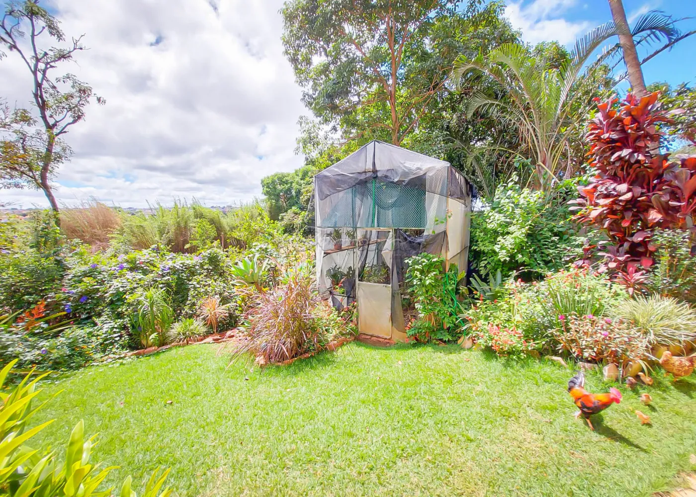 O terreno conta com uma estufa de orquídeas, árvores frutíferas, galinheiro e horta. Oferece garagem coberta para 02 veículos, além de uma garagem em construção para 01 veículo. Ideal para quem busca conforto em meio à natureza.