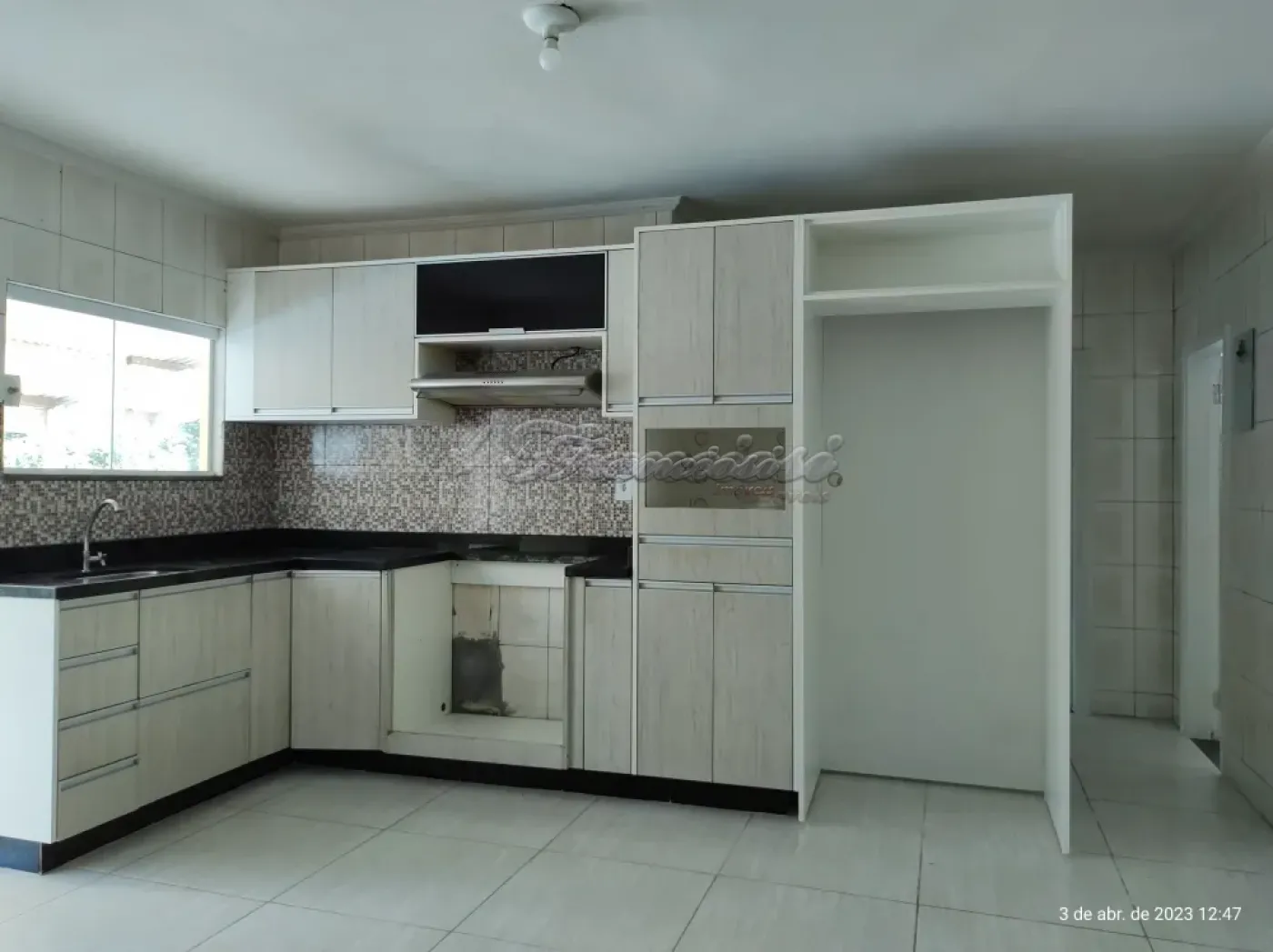 3ª Casa: 1 dormitório, 1 banheiro com armário, sala, cozinha, área de serviço coberta, quintal grande (na frente) com grama, entrada para 2 carros.