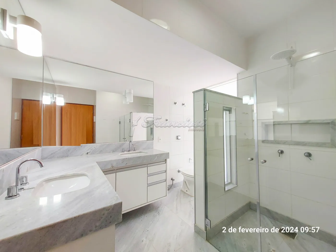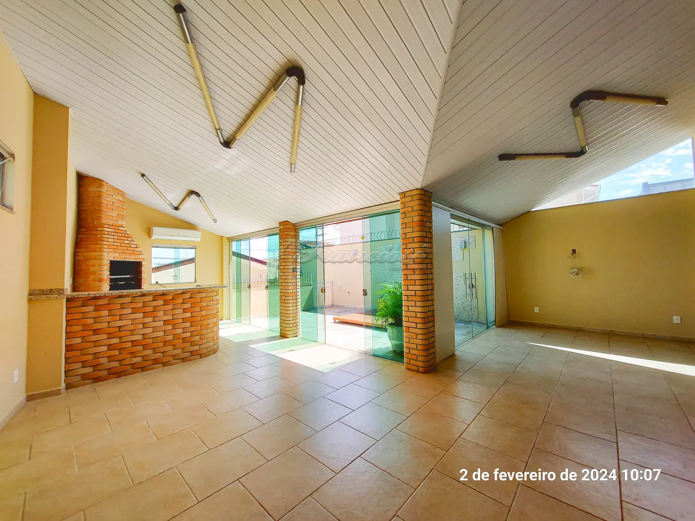 Acabamento: laje, piso frio, blindex e pedra.