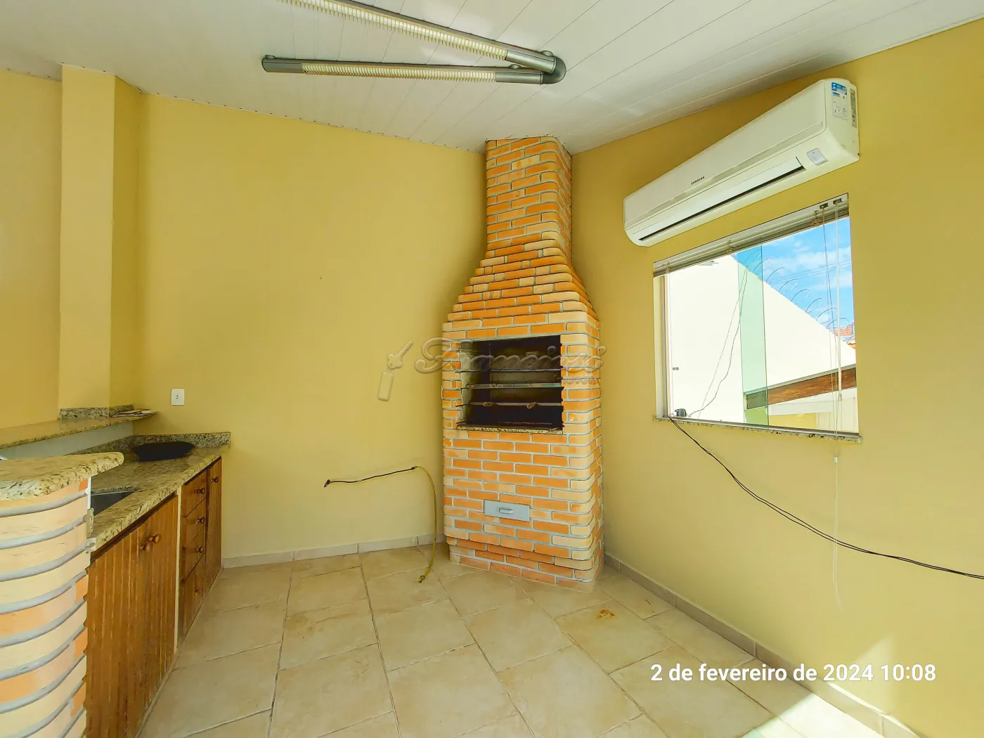 Parte inferior: Sala ampla 2 ambientes, escritório, 1 banheiro, cozinha com armários, lavabo, edícula com banheiro, lavanderia, área gourmet e banheira.
