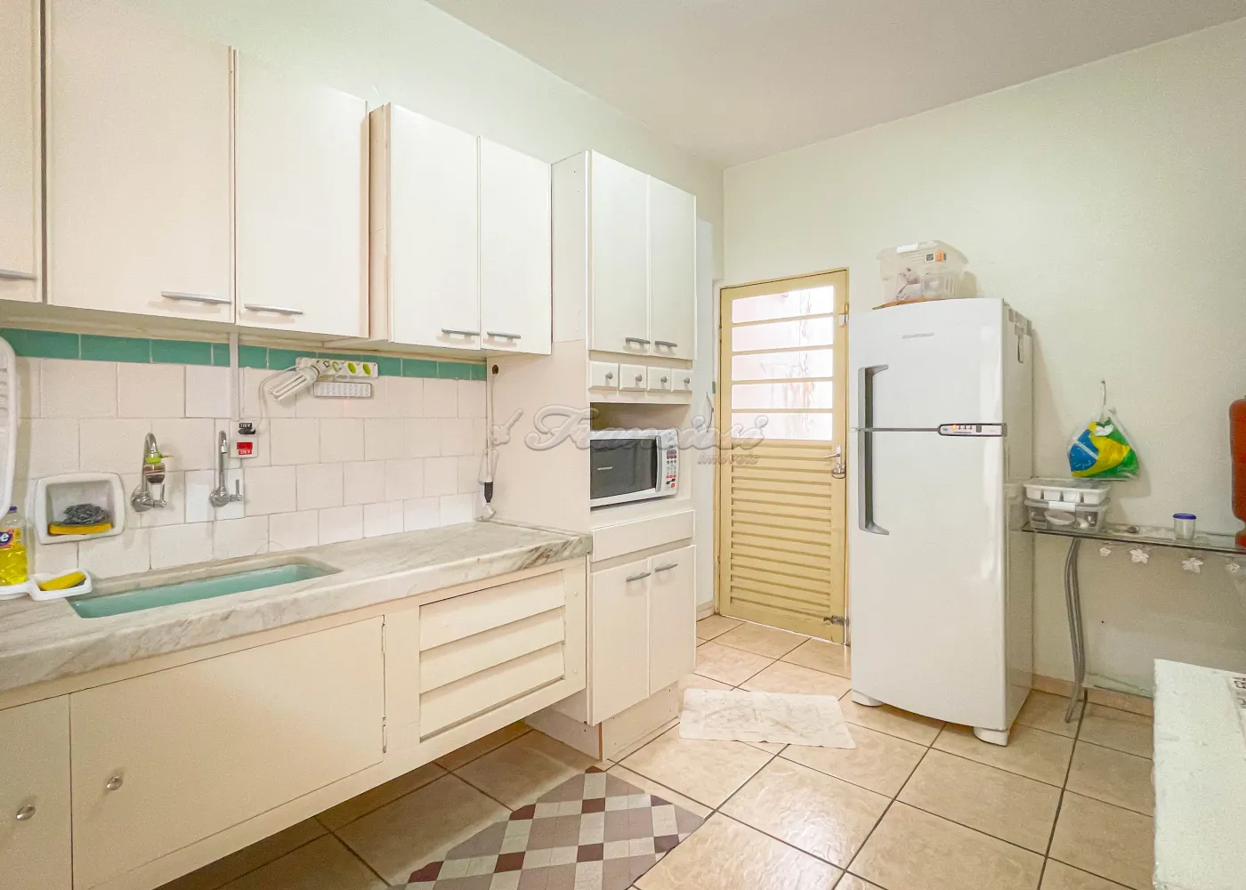 O imóvel oferece quatro dormitórios sendo um suíte, duas salas, uma espaçosa cozinha com armários embutidos, três banheiros, uma lavanderia, um quintal, um quarto de despejo e uma garagem com capacidade para um veículo.