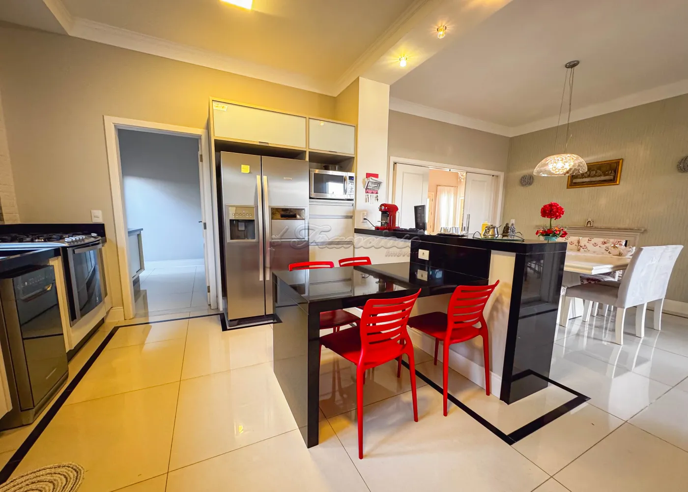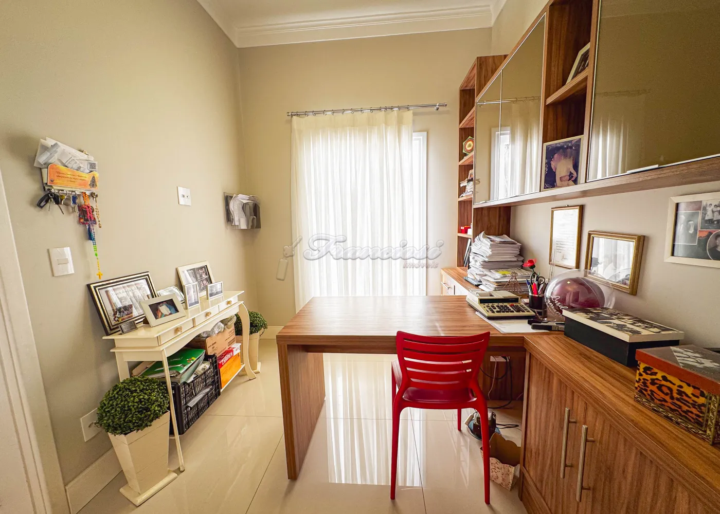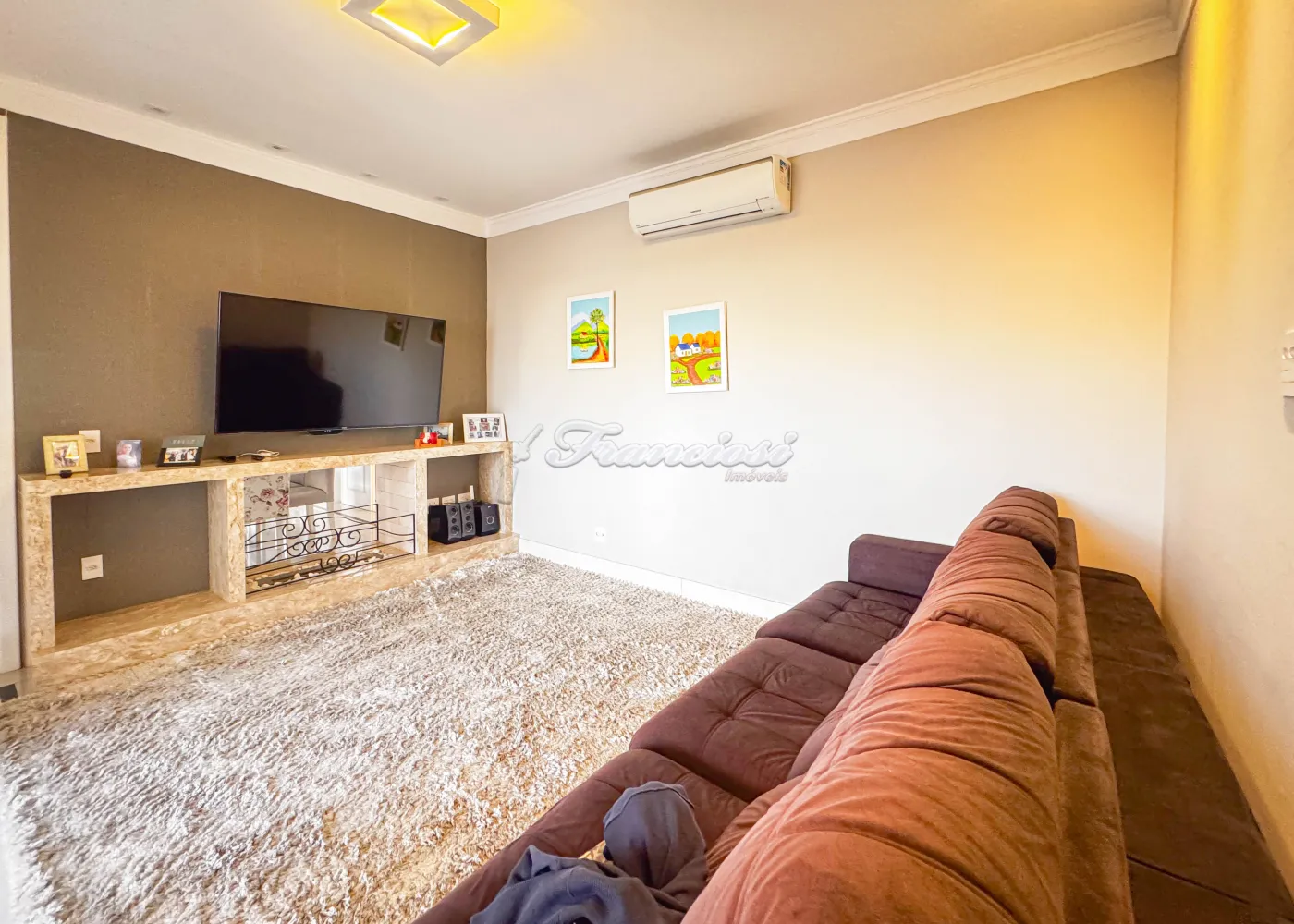 Acabamento: porcelanato fulget, pedra portuguesa, patamar de entrada em travertino, portas feitas sob medida, móveis modulados na casa toda.