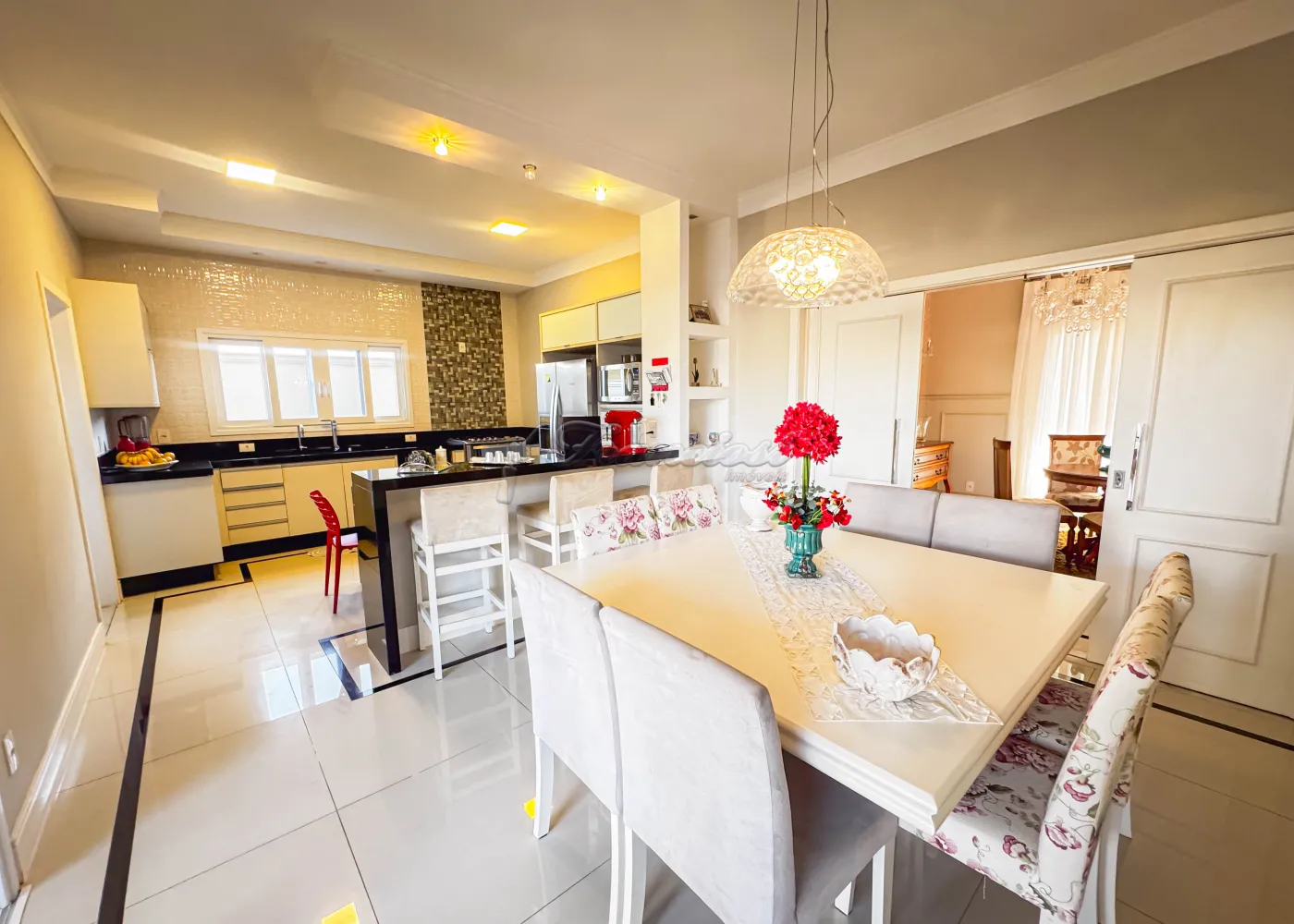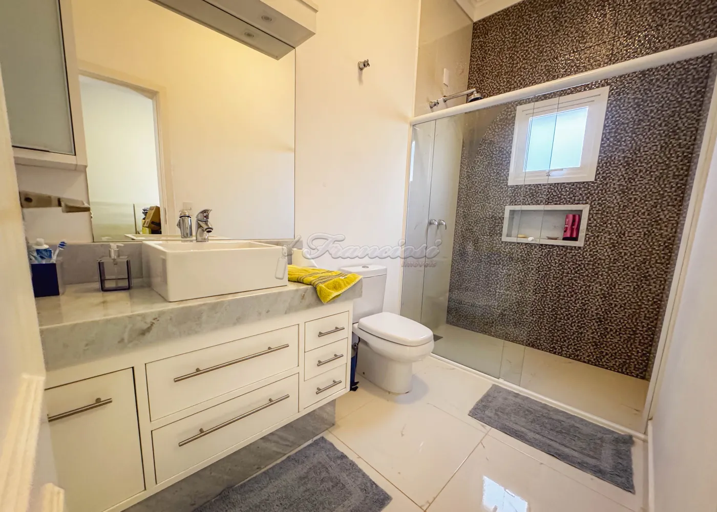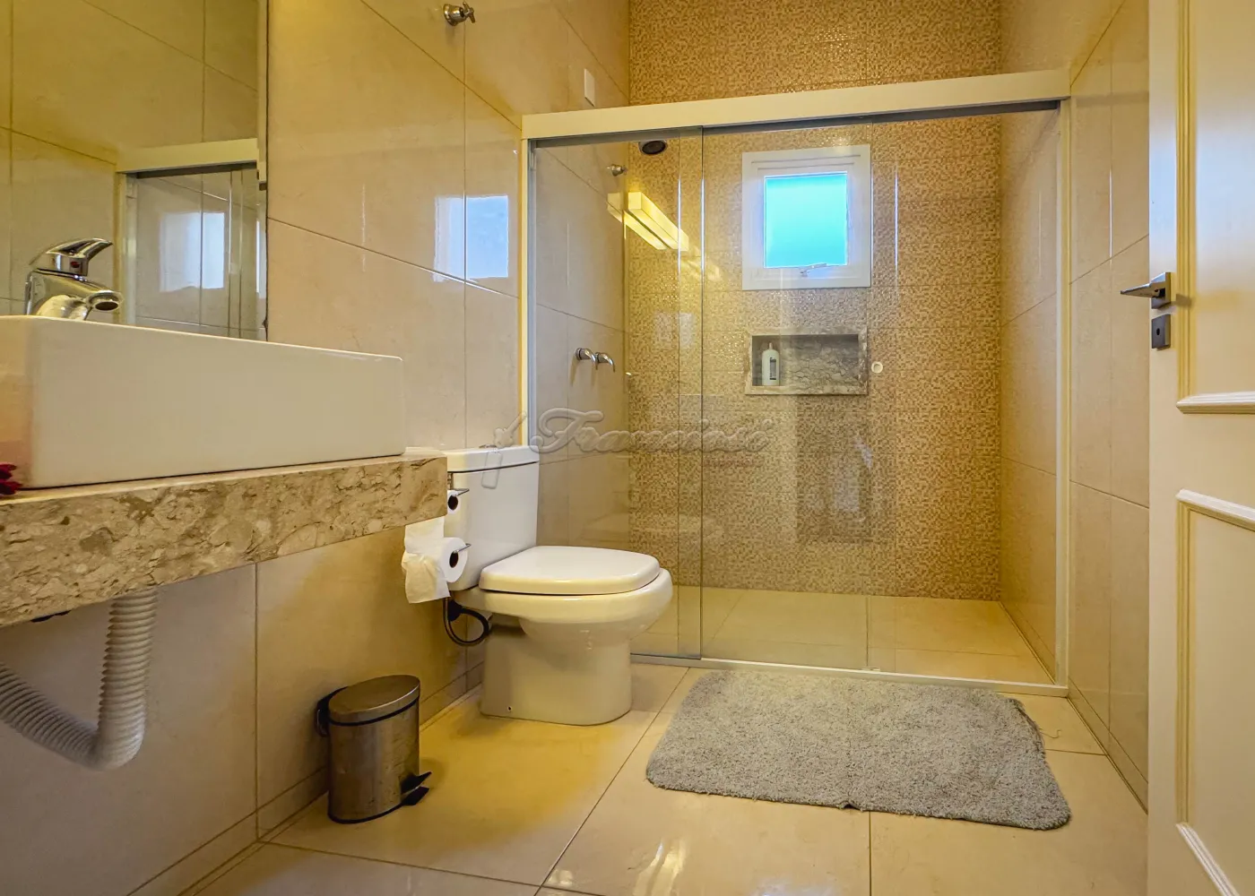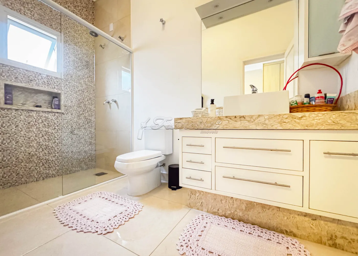 Acabamento: porcelanato fulget, pedra portuguesa, patamar de entrada em travertino, portas feitas sob medida, móveis modulados na casa toda.