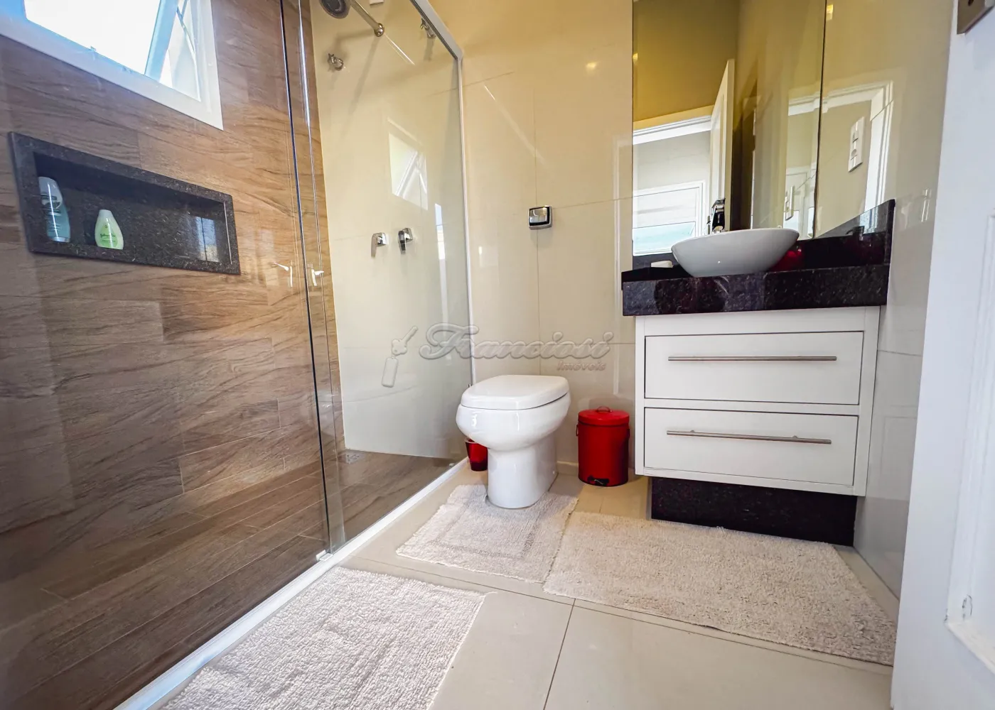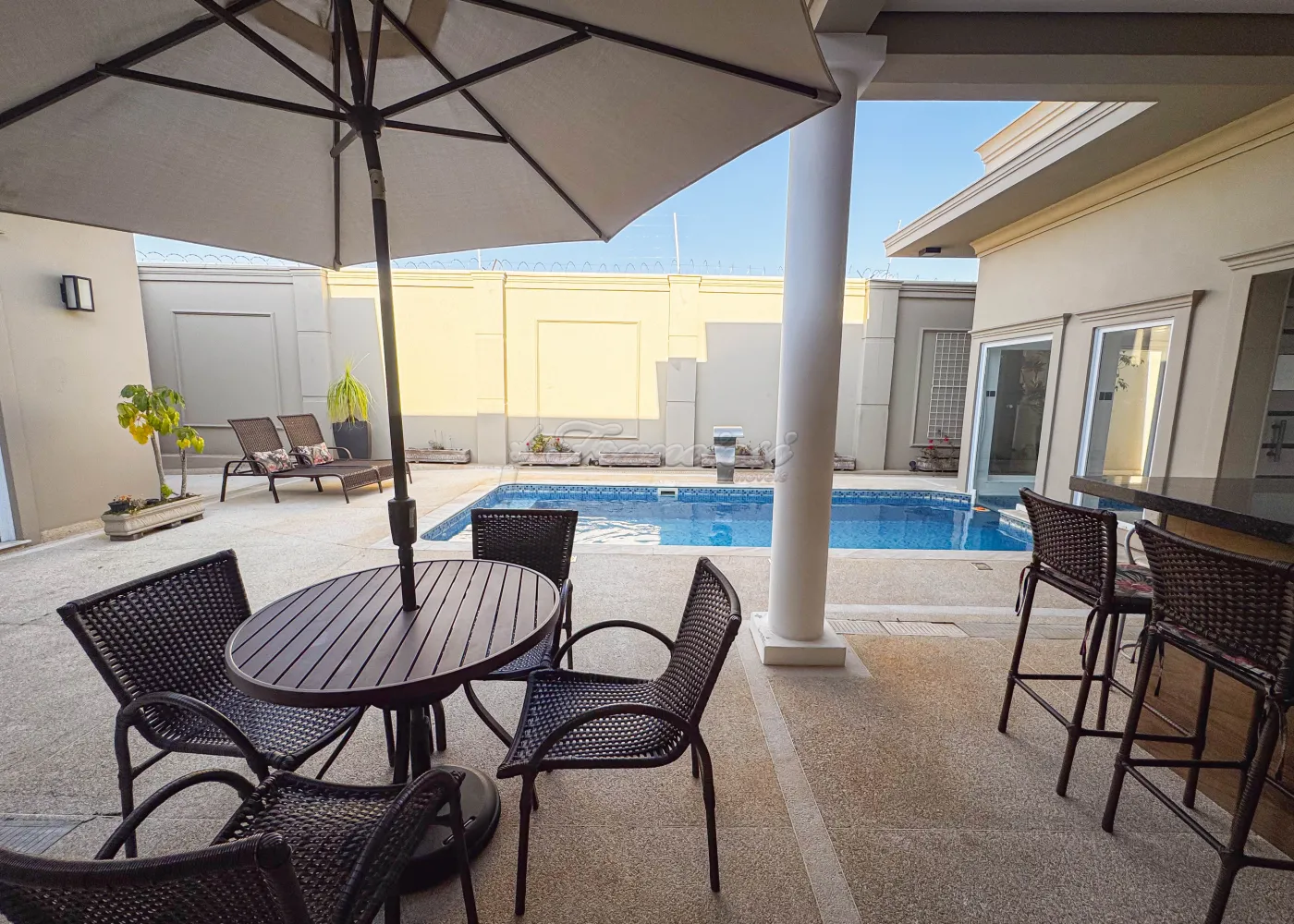 Imóvel novo, com 4 Suítes completas + 01 Quarto de apoio, 2 Salas, Lavabo, Escritório com entrada para a suíte principal, Sala de jantar, Cozinha, Despensa, Lavanderia, Espaço gourmet com churrasqueira tradicional e a gás, Piscina aquecida dentro da Sauna, Ofurô, Cisterna, Lareira a álcool, 1 banheiro externo na área de lazer e Vagas para 3 carros grandes. Possui Energia solar Fotovoltaica.