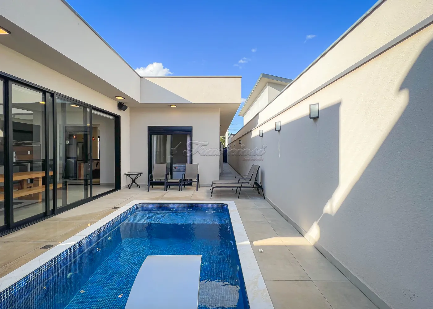 A área social integra sala de estar, sala de jantar, área gourmet e piscina, criando um espaço ideal para receber e aproveitar momentos de lazer. Conta ainda com lavabo, lavanderia, quintal e garagem para 02 veículos.